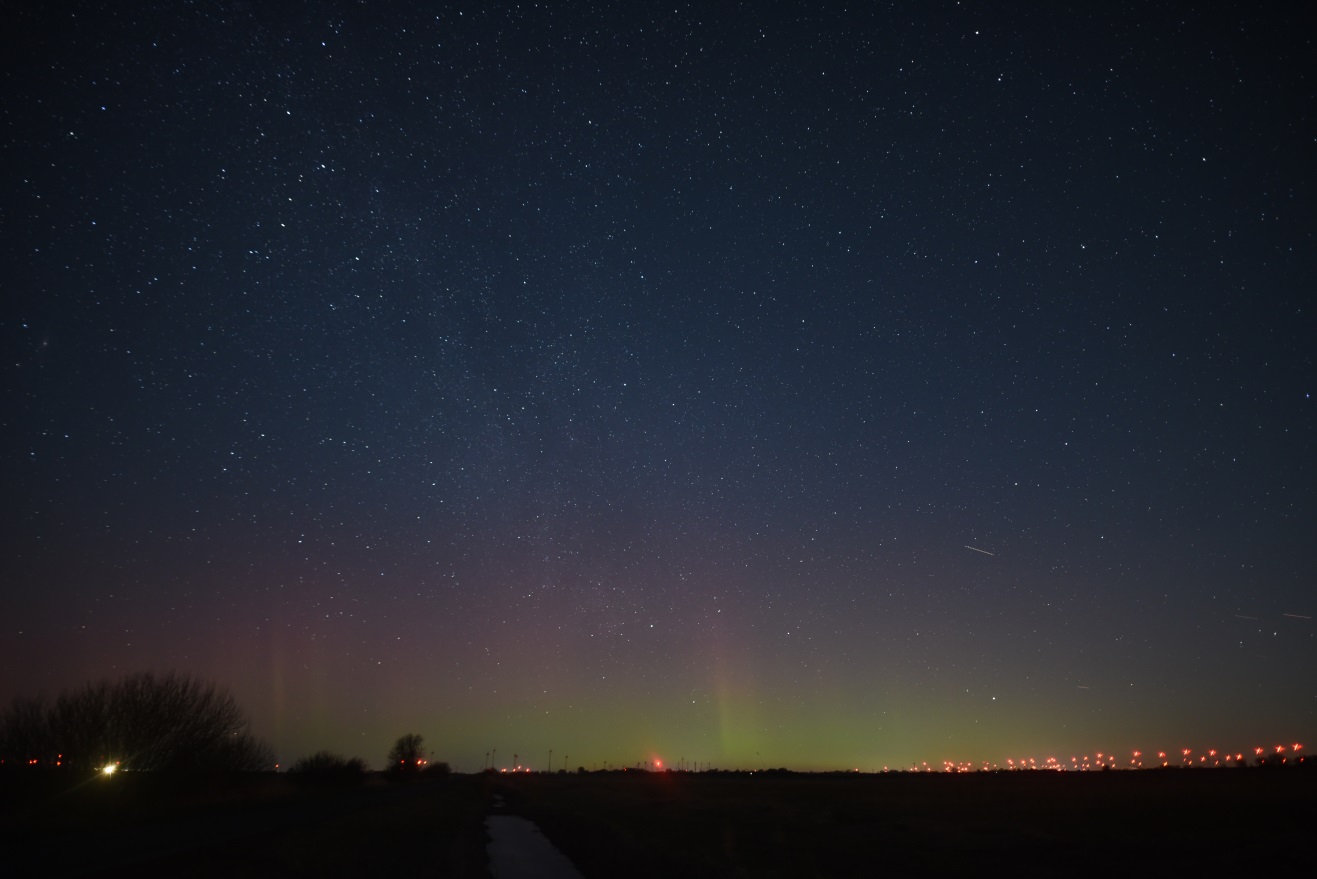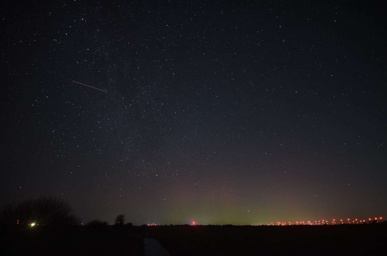 Auch an der priv. Wetterstation Süderlügum (54° 52´19″ N/8° 54´45″ O) wurde am 16.02.2025 in der Zeit von 22 - 24 Uhr ein schwaches fotografisches Polarlicht aufgezeichnet.