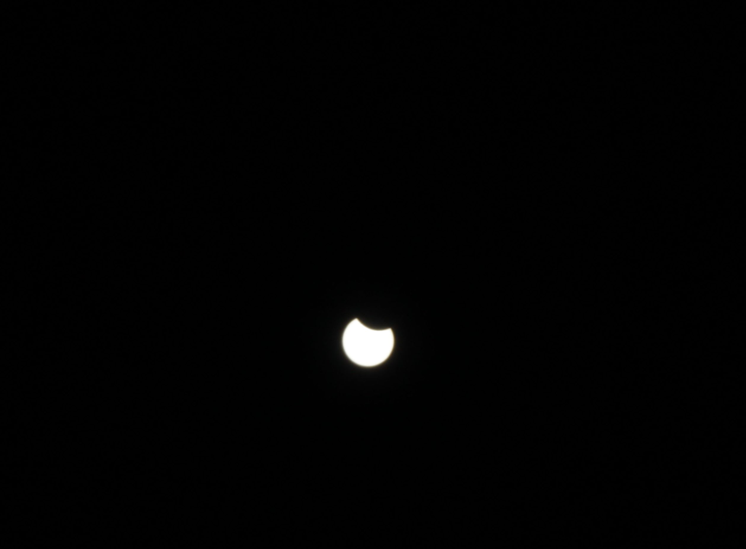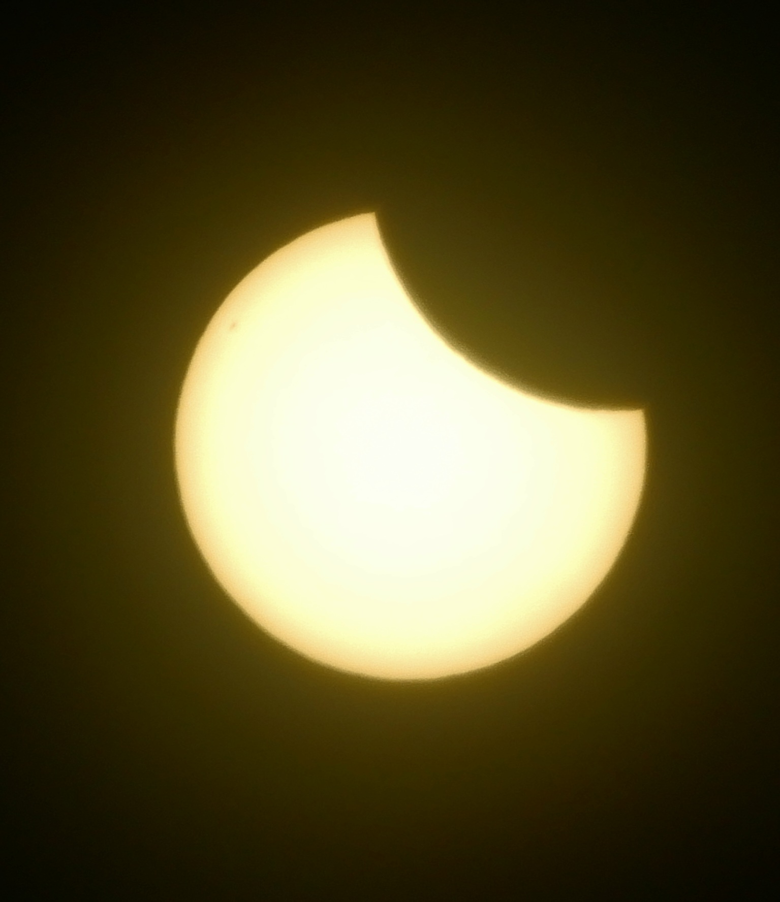 Eine Mini-Wolkenlücke bescherte uns aber gegen 12:38 Uhr MEZ die Gelegenheit für einige Fotos ohne jegliche Hilfsmittel aus der Hand