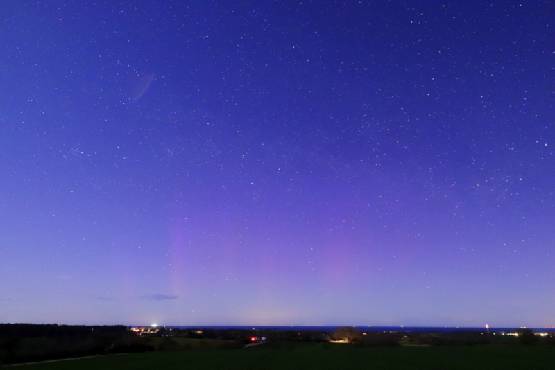 nicht viel, aber immerhin etwas. Überwiegend war es rot-violettes Glimmen. Im Ansatz sind aber auch einzelne Strahlen erkennbar. Auf dem Kameradisplay sah das teilweise etwas anders aus, wo die Strahlen durchaus erkennbar waren. Anbei zwei Fotos: