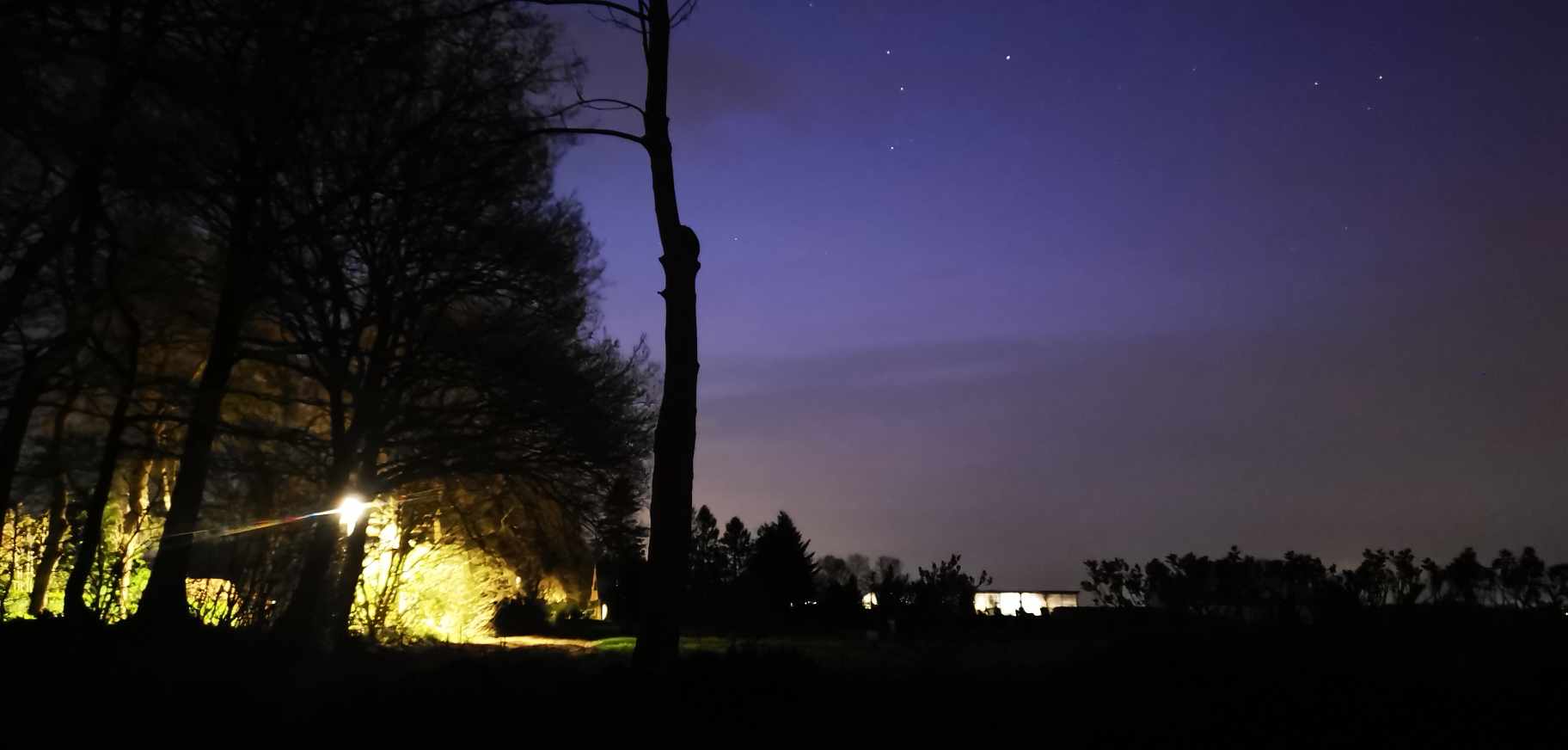 Ab 22 Uhr war der Himmel bereits in den Wolkenlücken lila eingefärbt. Bild 2 (da hab ich wohl auch einen Satelliten-Flare erwischt)
