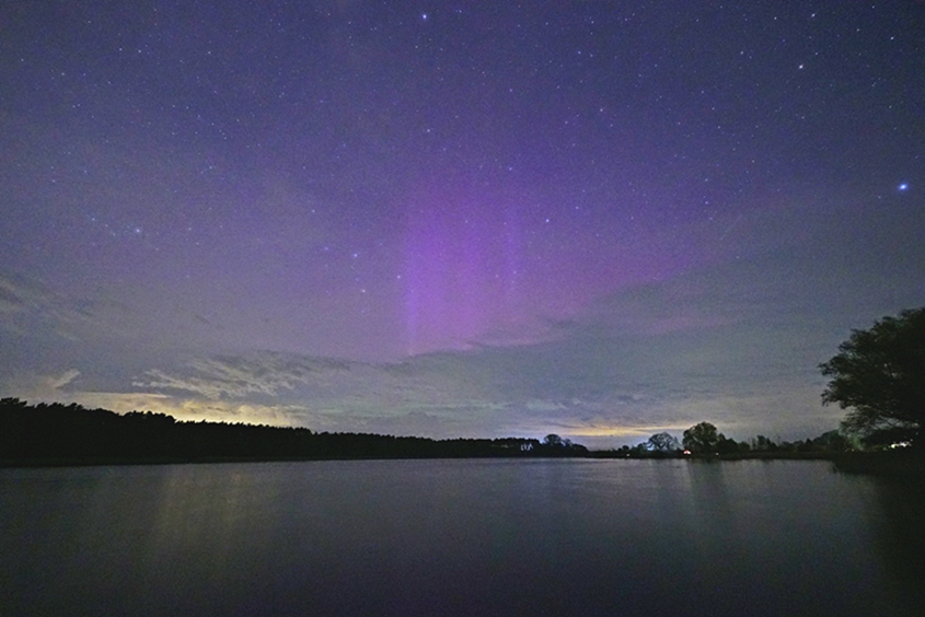 Am 16.04.25 ca. 22:30 Uhr Ortszeit war in Schleusingen 50,3° (Südthüringen) schwach visuelles Polarlicht zu sehen.