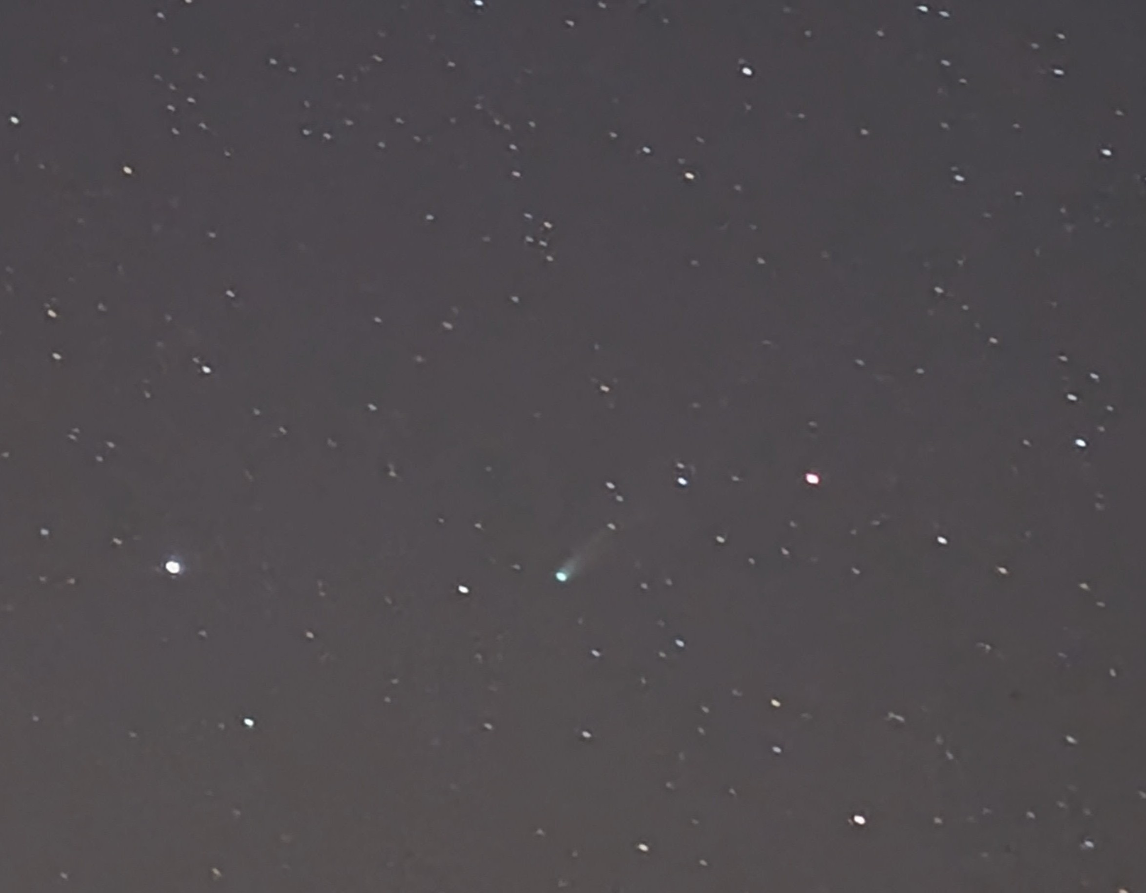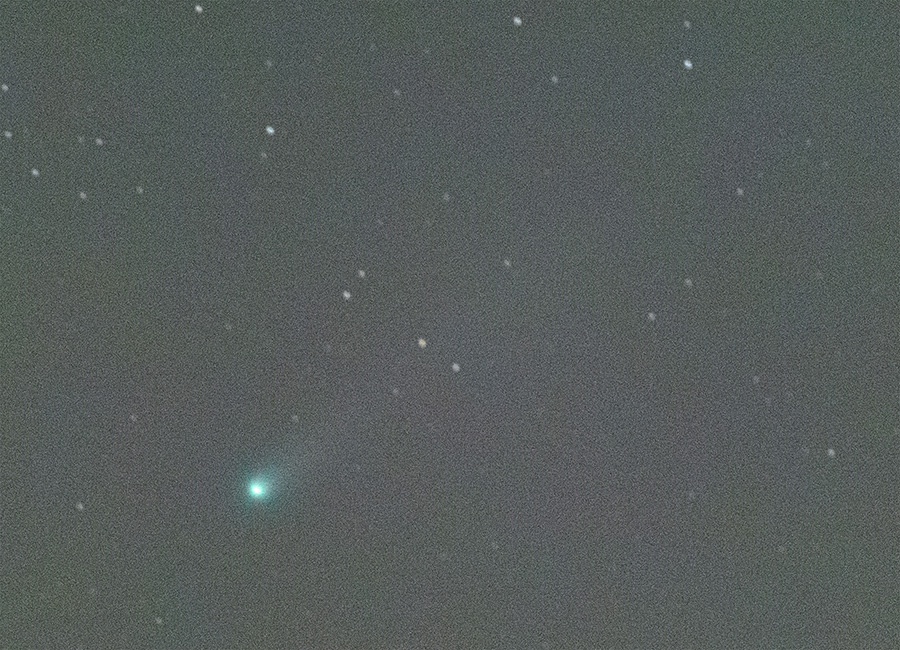 Ich hatte letzte Nacht (03.10.2025) mich auch mal am Komet "Lemmon" probiert und das noch klare Wetter genutzt. Mit der Kamera war er leicht aufzufinden, in den Bildern ist auch der Schweif gut erkennbar. Aufnahme mit 400 mm Brennweite: