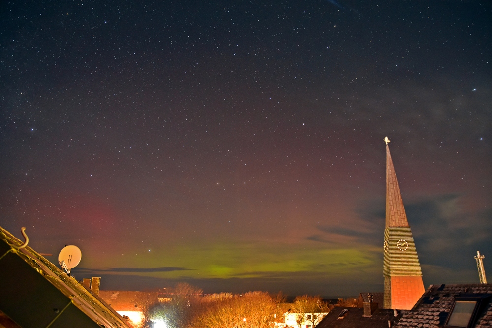 Von meinem erhöhten Standort in Hamburg Eidelstedt konnte ich su um 21:15 Uhr schwaches Polarlicht sehen.