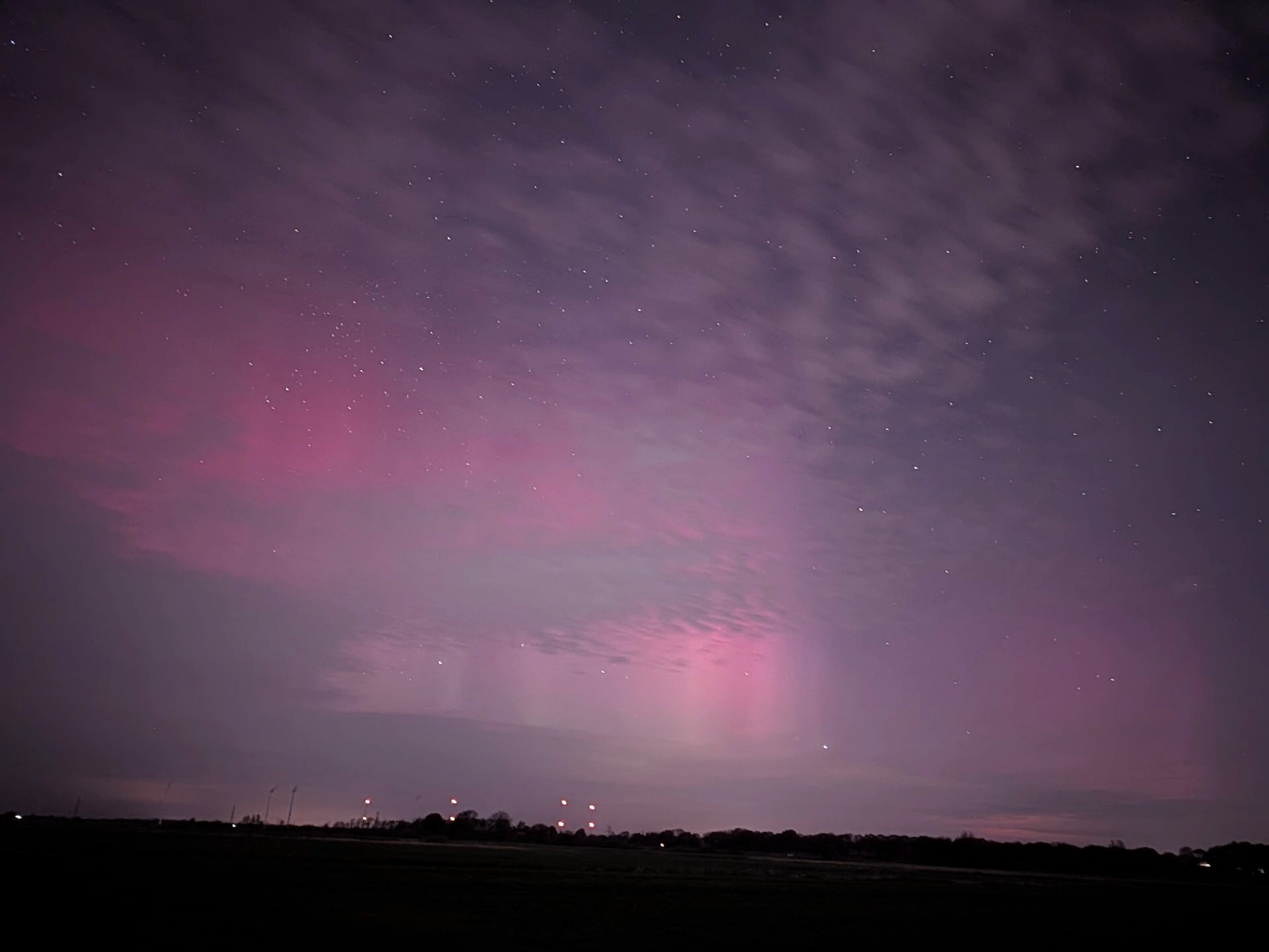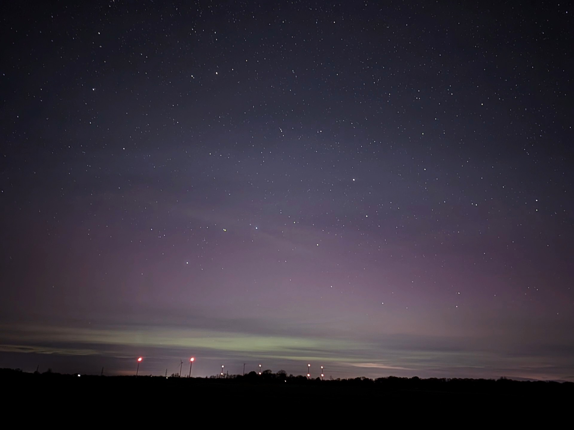 Was meint ihr dazu? Die Farbe ist recht intensiv aber es glimmte nur kurzzeitig ohne erkennbare Beamer für maximal zehn Minuten. Könnte das Polarlicht sein? Zumindest habe ich den Verdacht. Denn in dieser Richtung sind weder Straßen noch Ortschaften von denen das Licht hätte stammen können.