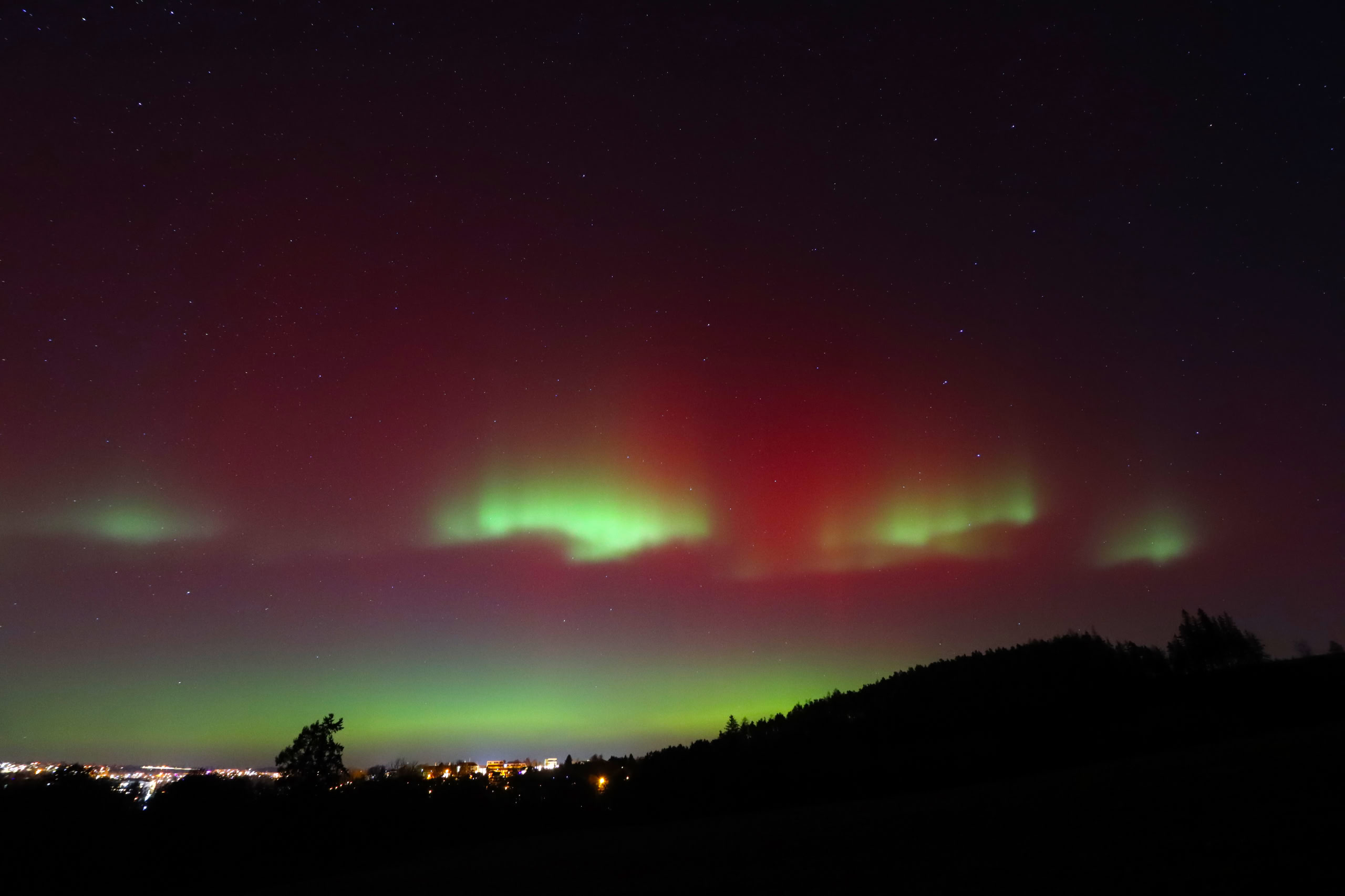 Den Event hätte ich fast verschlafen. Ein Anruf von meinen Vati brachte mich erst darauf aus dem Fenster zu schauen. Er ist Amateurfunker und meinte, es klinge nach Aurora. Die grünen Bänder liefen von Ost nach West. Später konnte man auch die hellen und schnell aufleuchtenden Flecken im Süden sehen. Um es mal poetisch auszudrücken, es sah aus, als ob jemand hell leuchtende Wolken aushauchte,die schnell wieder verschwanden.