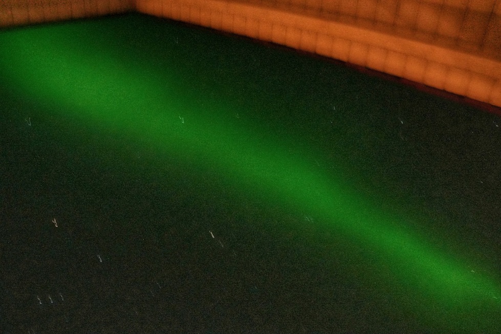 22:14 Uhr helle (grüne) Bänder wandern zum Zenit, über Kopf und im Süden zu beobachten, erscheinen, sind ein paar Sekunden sichtbar, verschwinden, erscheinen an anderer Stelle wieder usw, extrem hell