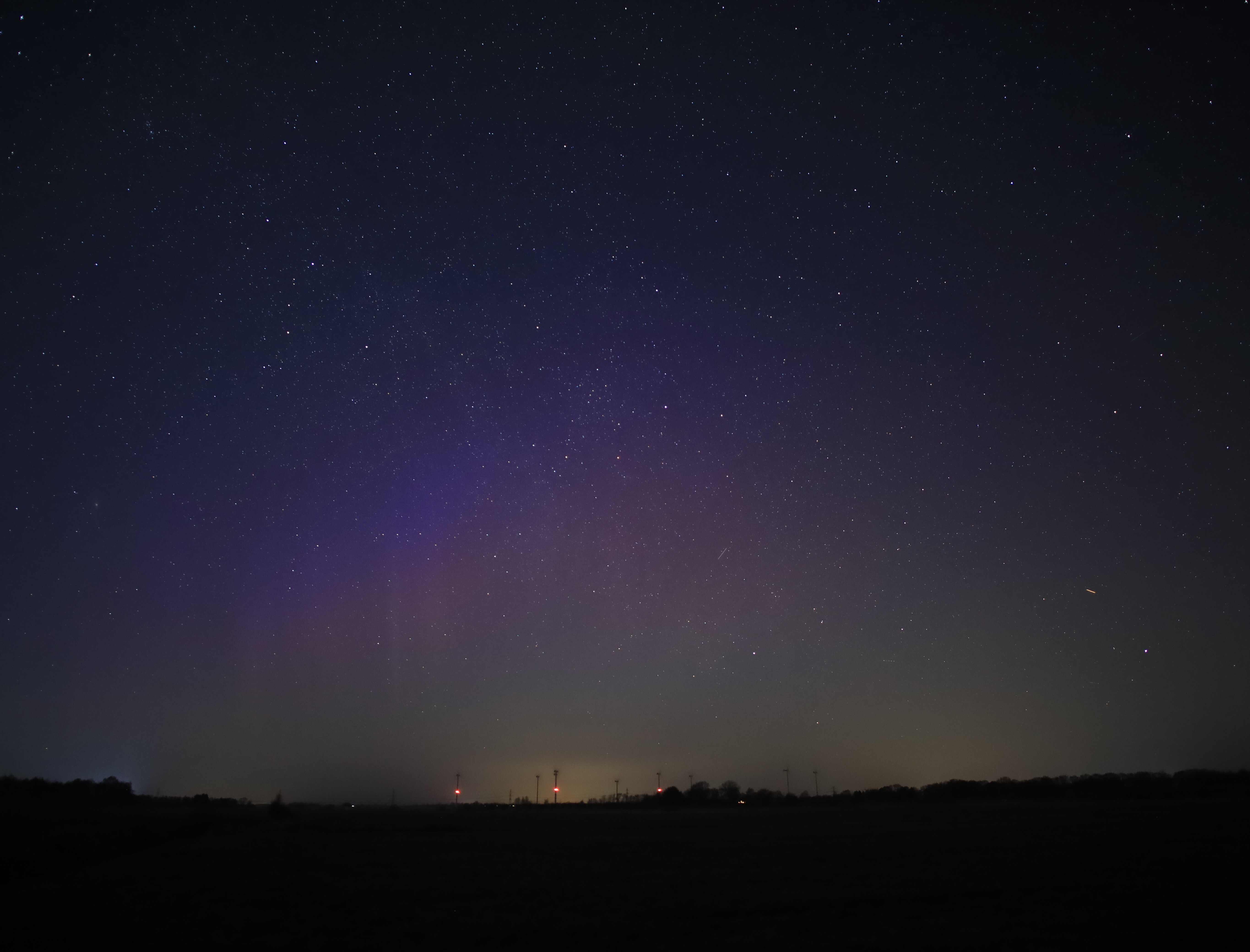 Zeit: 19:50 - 20:10 UTC (diffuses Lila, kein grünes Leuchten in Horizonthöhe zu erkennen), gegen 19:52 UTC blassrosa Beamer (war im Zeitraffer zu sehen, aber schwierig auf dem Foto zu erkennen)
