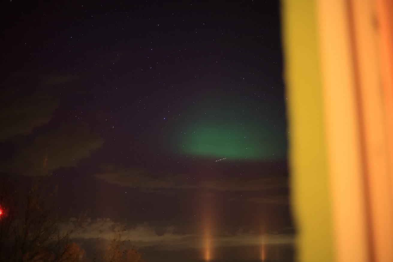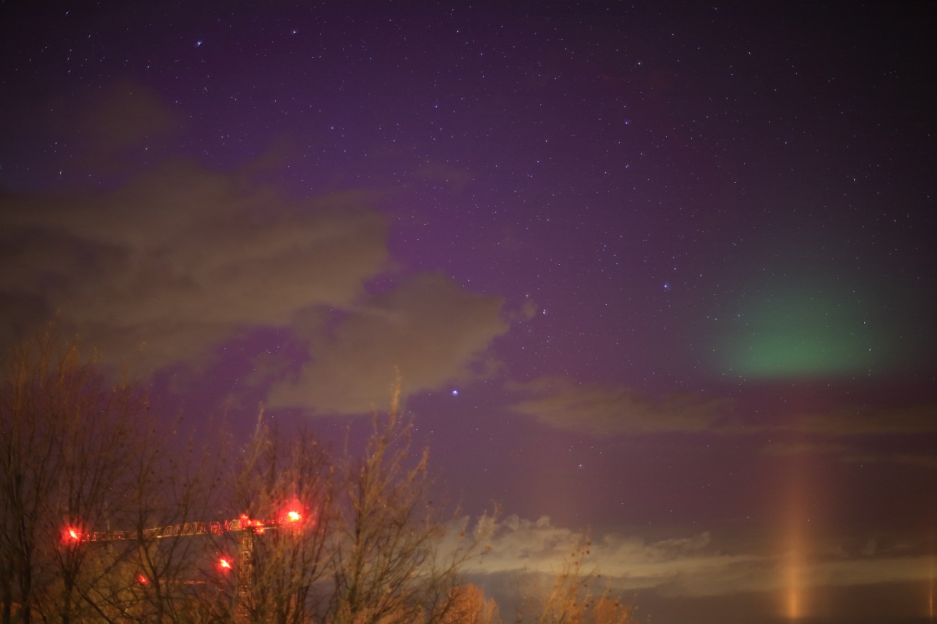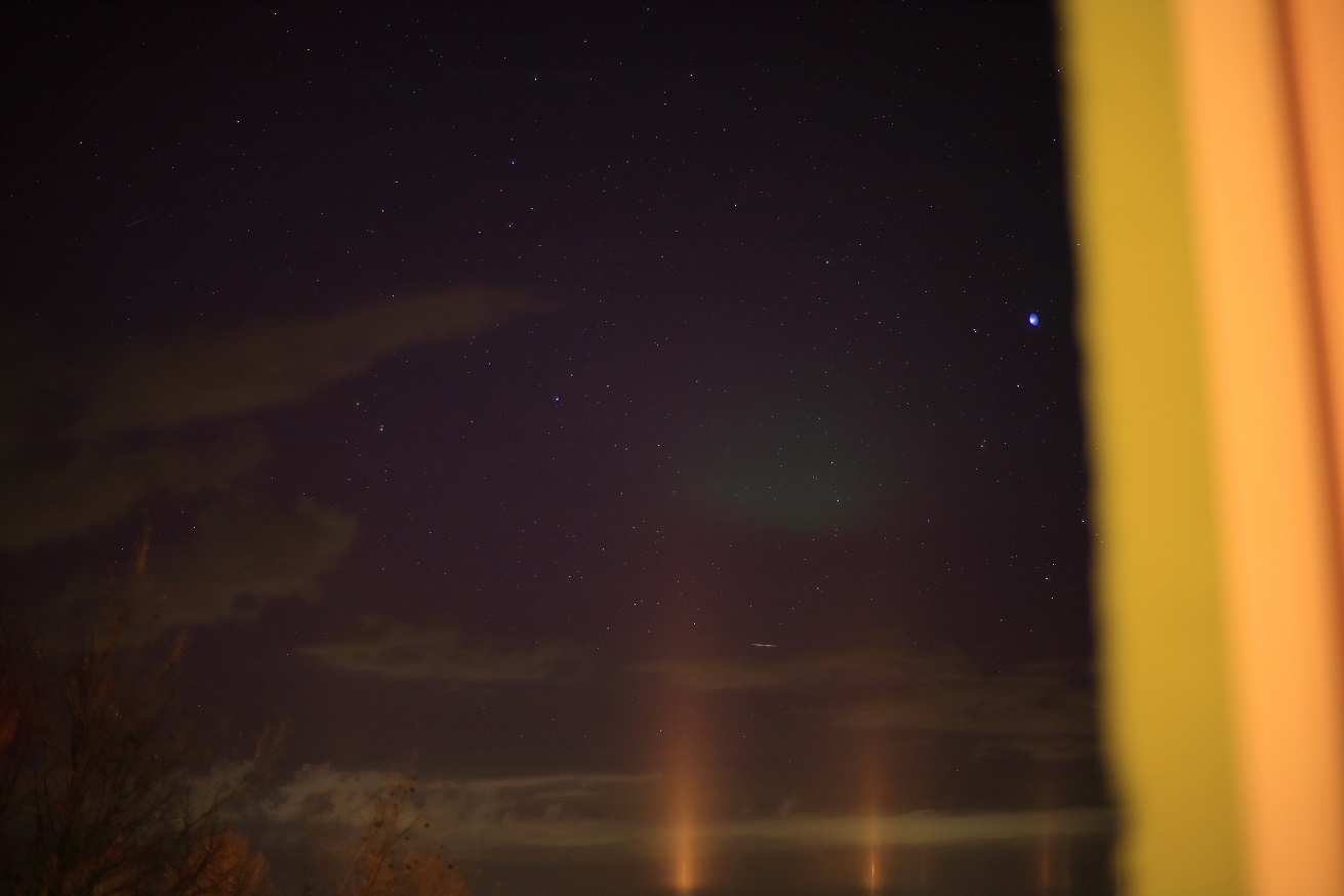 Visuell konnte ich wegen der Kombi aus Lichtverschmutzung und aufgehellten Wolken leider nichts eindeutig erkennen.