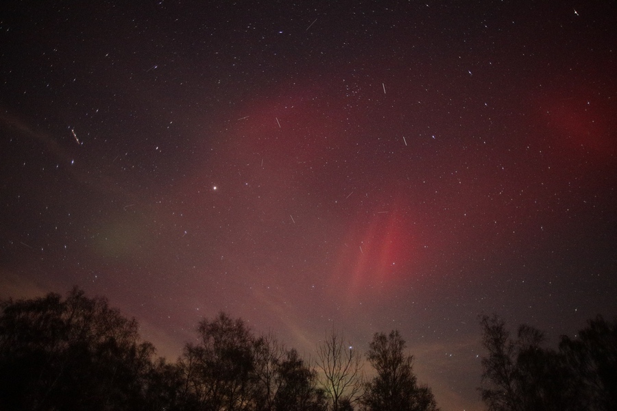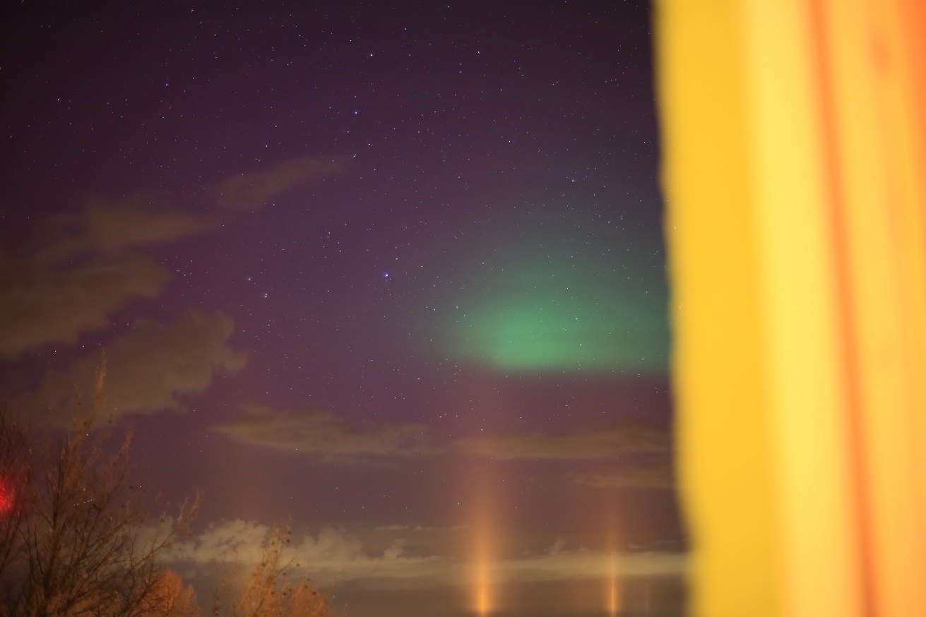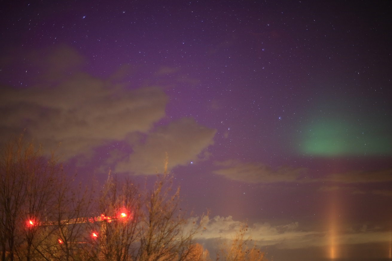 Visuell konnte ich wegen der Kombi aus Lichtverschmutzung und aufgehellten Wolken leider nichts eindeutig erkennen.