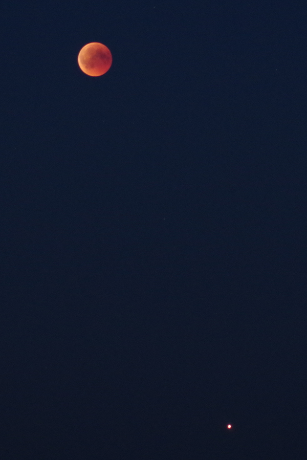 Ich fand die gestrige Mondfinsternis sehr spannend, obwohl uns der Mond die erste Stunde nach seinem Aufgang erstmal auf die Folter gespannt hat mit seiner Nichtsichtbarkeit im Dunst überm Horizont.