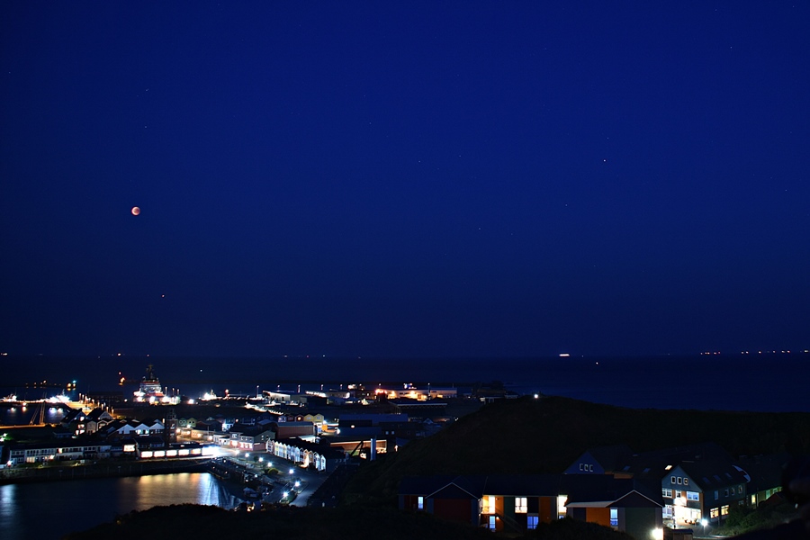 kurz nach 22:30 mesz gab sich der mond dann die ehre. habe 'mal 3 bilder mit maritimen vordergrund 'drangehängt.