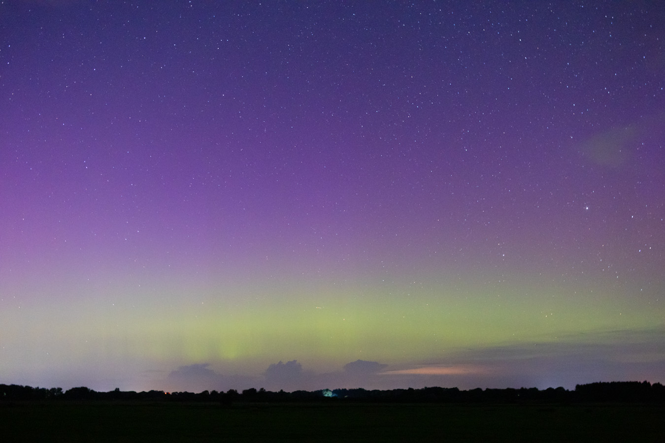 Das erste Mal, dass ich Wetterleuchten (links im Bild) und Nordlicht zusammen erwischt habe.