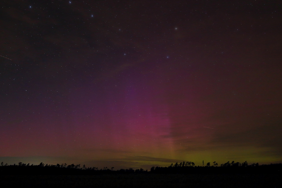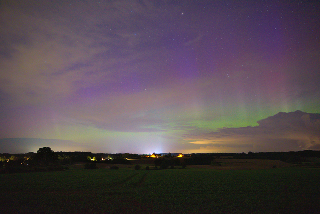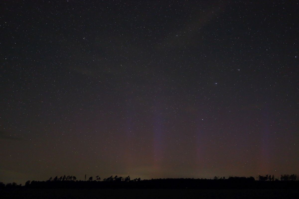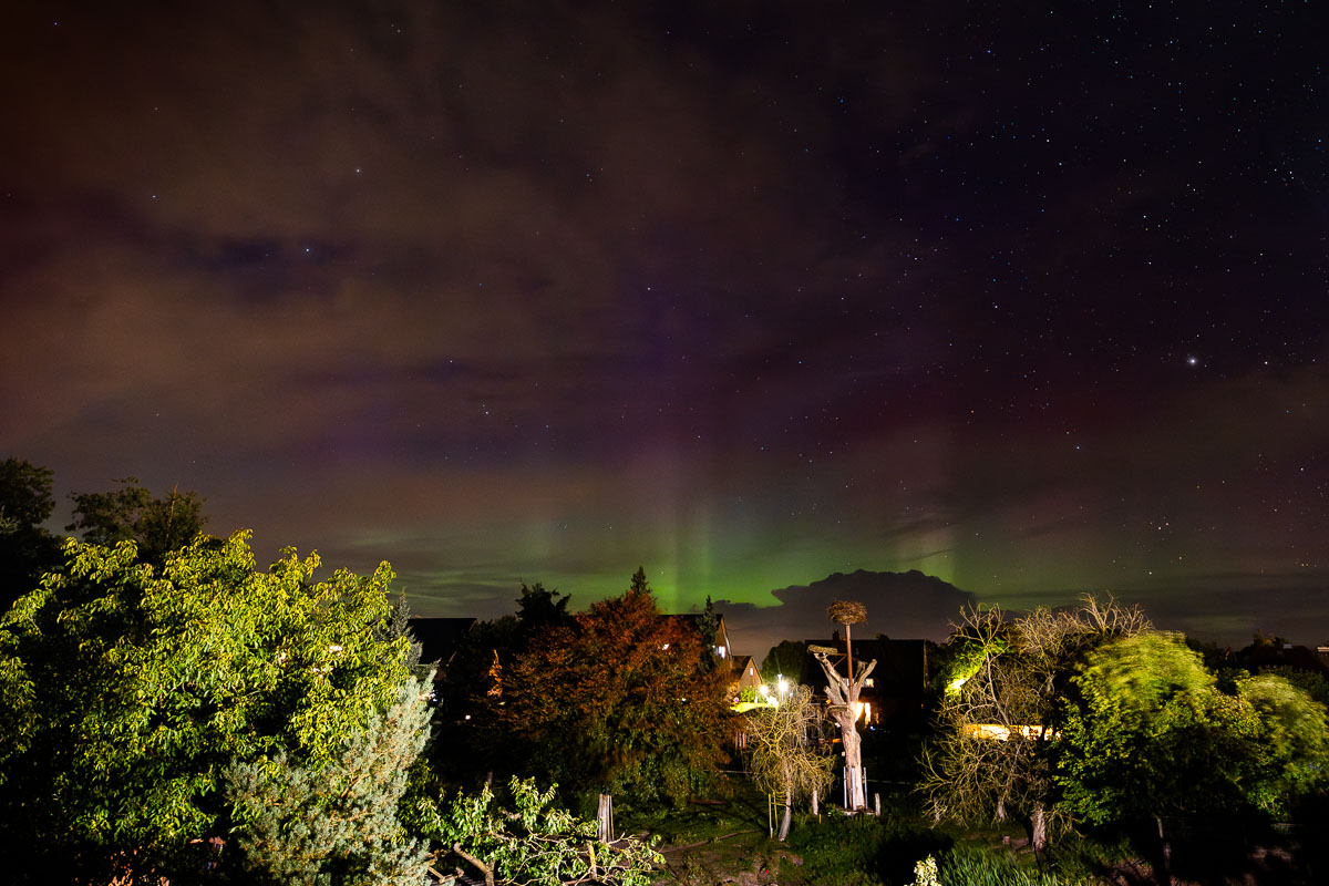 Hier, etwas östlich von Hannover, konnte ich gegen 21.40 Uhr MESZ ebenfalls schwaches Polarlicht fotografieren. Sehen konnte ich es nicht.
