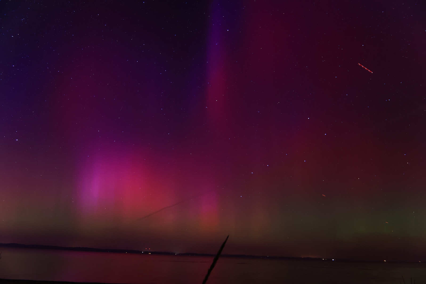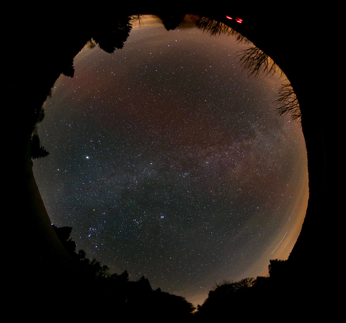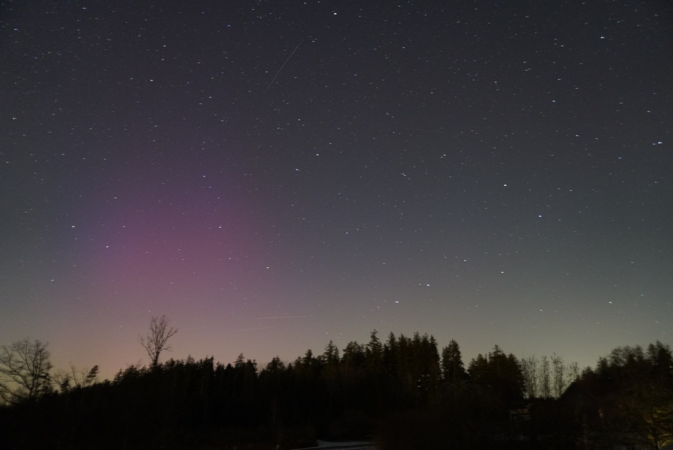18:34 Ortszeit aufgenommen, das erste Foto als Übersicht und dann eine 100 % Vergrößerung die zusätzlich aufgehellt ist. Auf sämtlichen weiteren Fotos der Nacht gibt es das nicht. Streulicht eher unwahrscheinlich, weil es dort keine Scheinwerfer oder Laternen gibt.