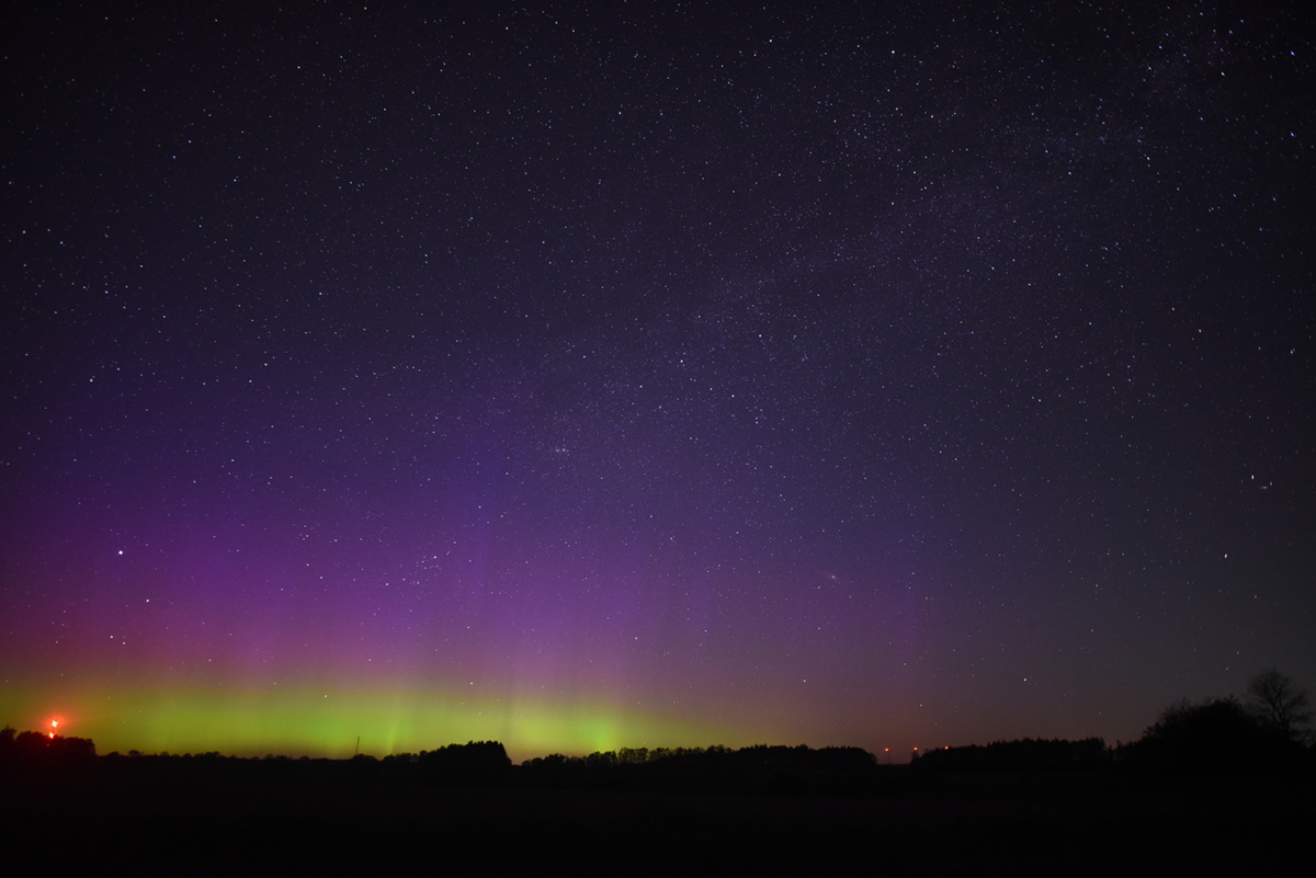 Aus Jellenbek nördlich von Kiel fotografisch und visuell Polarlicht seit meiner Ankunft hier, gegen 23:45 MESZ.