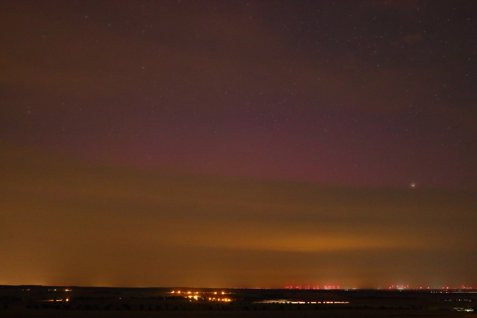 Hier nördlich von Lehrte bei Hannover gab es zur stärksten Aktivitätsphase (bislang) fotografisches Polarlicht!