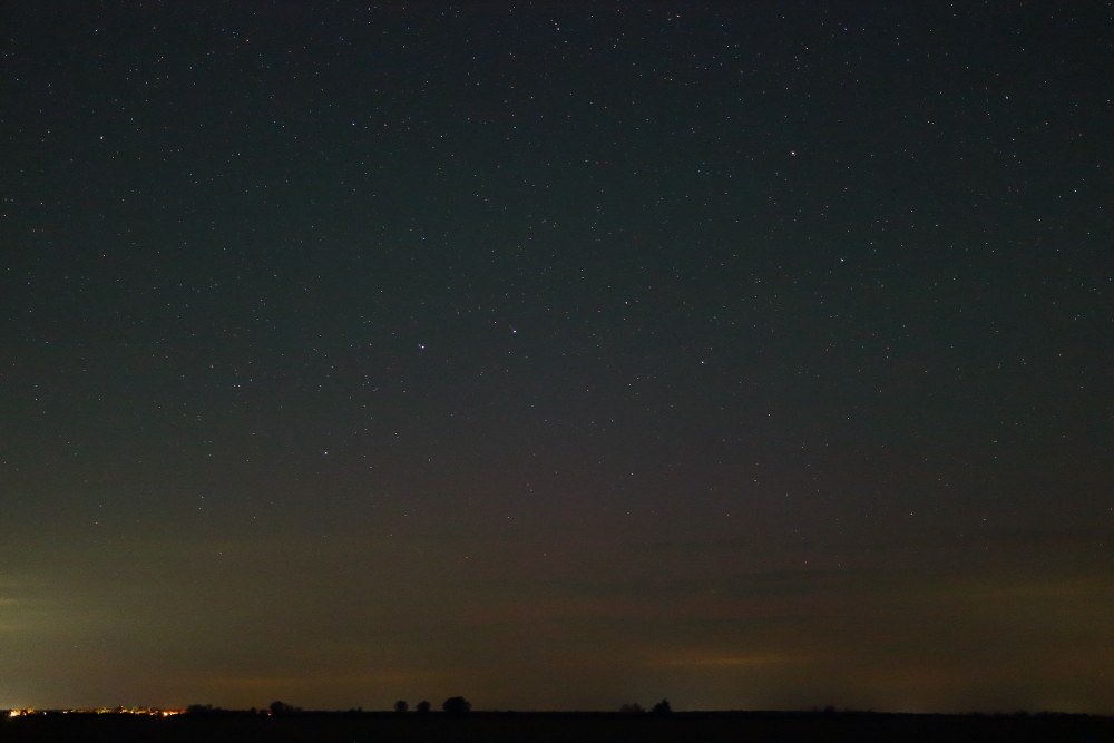 Zu viel gegrübelt, dann zu spät in die Puschen gekommen, die ersten Substorms verpasst, und die Bedingungen am Ausweichziel leider auch nicht so vorgefunden, wie ich es erhofft hatte. Die nach wie vor um sich greifende Lichtverschmutzung ist leider ein Graus. Hab versucht, noch das Beste aus der Misere zu machen. Und für fotografische Nachweise des Polarlichts mitsamt Airglow hat es dann am Ende ja Gott sei Dank noch gereicht. Belichtungstechnisch wäre auch noch mehr gegangen. Da habe ich nicht aufgepasst. Das war wohl nicht mein Tag. Ich habe mich dafür entschieden, den Substorm nach 03:00 MESZ zu bebildern.
