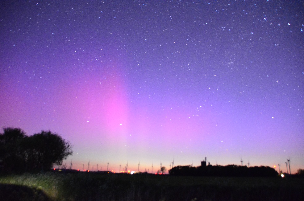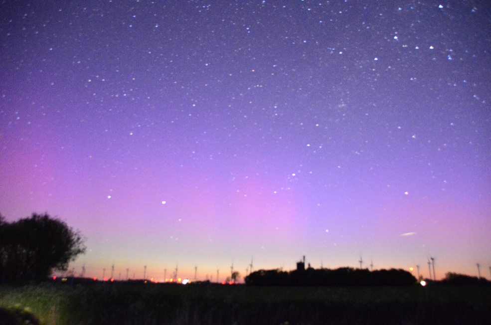 Hallo , ich konnte vom Amsinckhaus Hamburger Hallig in der Zeit von 0.45 bis 1.50 Uhr vom 19.auf den 20.5.23 intensives Polarlicht aufnehmen. Die Beamer waren in grau deutlich zu sehen. Mit Nikon D5600 sigma 18-250 mm ISO 4000/5600 mit 30 sec .