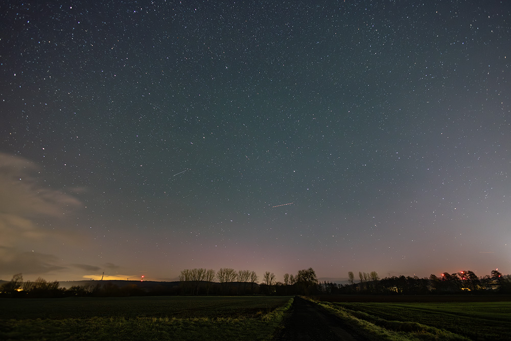 Kommentar: grünes Airlow, horizontnah eventuell rot-violettes Polarlicht?