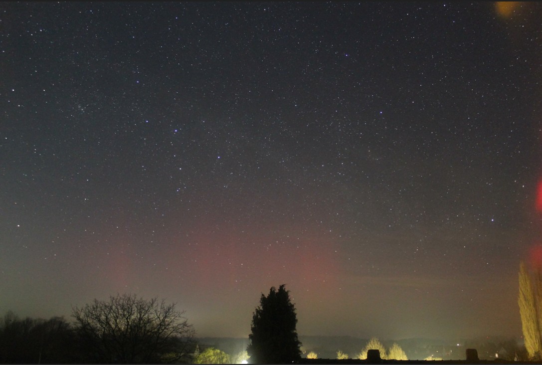 Nachdem der Bz-Wert so um 0:30 Uhr UTC teils unter -15 nT sank und es auch klar war, hoffte ich auf eine mögliche Sichtung und begab mich zu meinem üblichen Beobachtungsort ins Feld. Erstmals sicher Polarlicht konnte ich dann gegen 2:36 Uhr MEZ, wo in horizontnähe etwas Rot in den Bildern zu sehen war. Gegen 2:50 Uhr wurde es dann eindeutig: