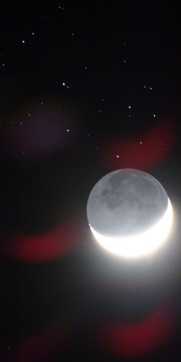 Und hier nun während die ersten Bedeckungen stattfanden. Bei dem hellen Stern am Mondrand handelt es sich um Elektra.