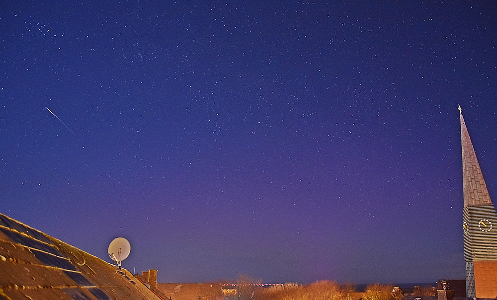 Leider war das Polarlicht selbst fotografisch nur schwach zu sehen, mit der Kontrastverstärkung etwas besser (im Bereich des Schornsteins des rechten Giebels).