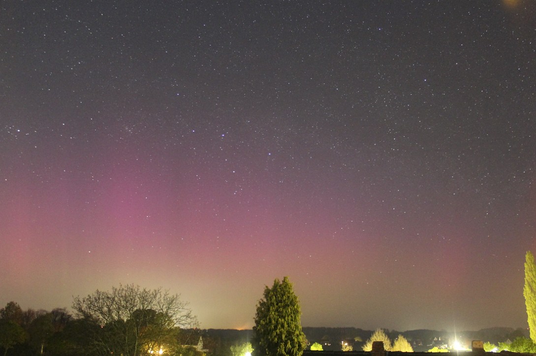 auch aus Dortmund konnte ich an Ostern das Polarlicht fotografieren. Da ich von den Werten und Meldungen überrascht wurde, habe ich es nicht mehr zum Beobachtungsplatz geschafft. Schon auf dem ersten Foto war das Polarlicht erkennbar. Für kurze Zeit war ein farbloser Strahl schwach visuell sichtbar.