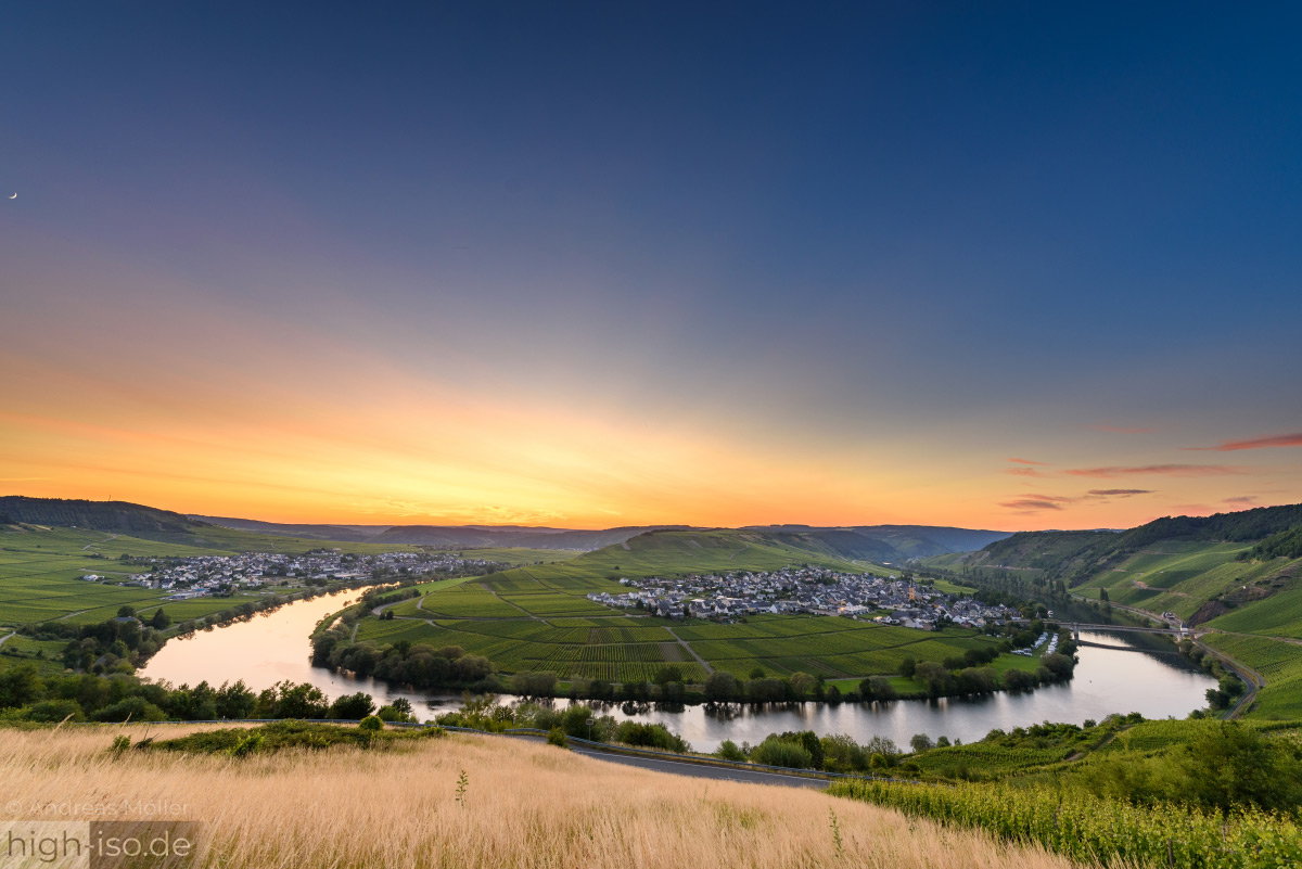 am 22. und auch am 24.06.2020 konnte ich intensives Purpurlicht und auch Schattenstrahlen beobachten. Gerade am 24.06. vor Sonnenuntergang lag irgend eine Staubschicht in der Luft. Hier zwei Fotos von der Mosel.