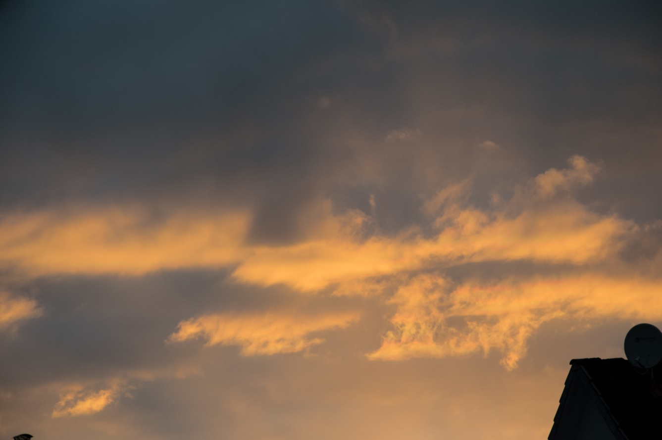 Gestern Abend kam es zu einer gebetenen Störung beim Abendessen: Draußen sollte ein Zirkumzenitalbogen sichtbar sein. (Danke für den Anruf, Uwe!)
