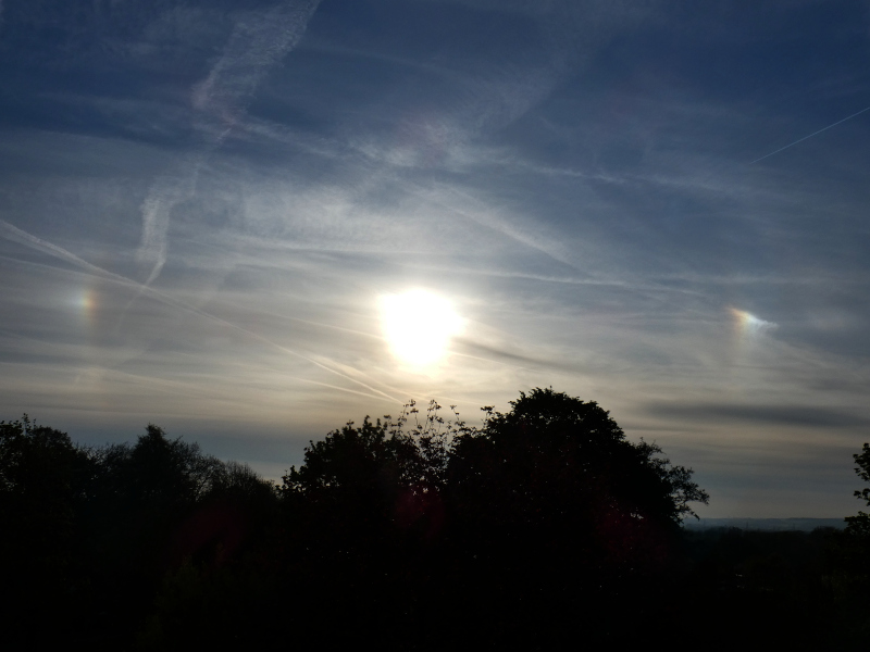 Am frühen Nachmittag gegen 14.30 bildete sich kurzzeitig ein Phänomen mit der rechten 120° Nebensonne. Für etwa 5 Minuten hatte diese bestand.