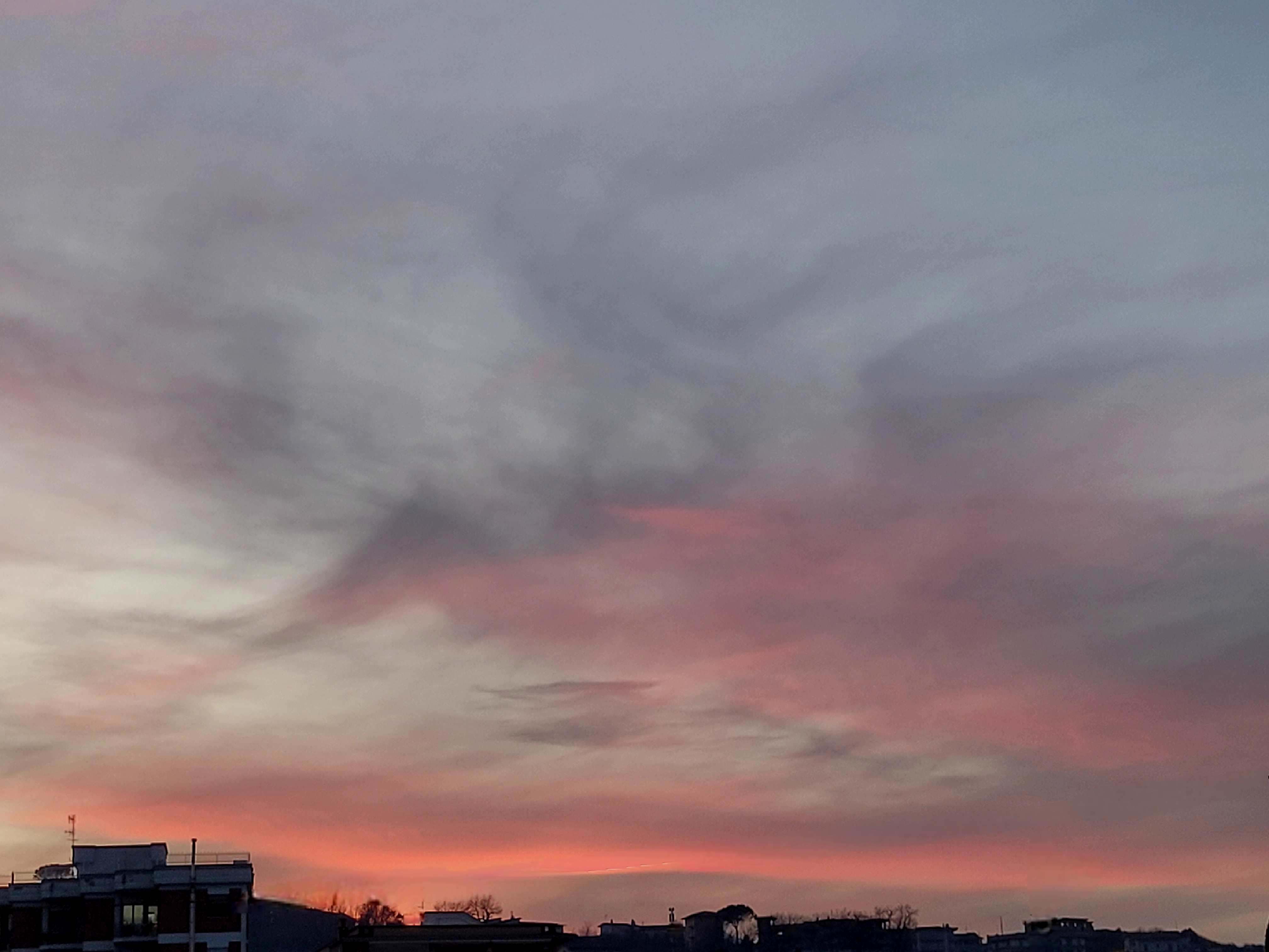 Am Himmel gab es einige Cirrus spissatus- und Cirrus fibratus-Wolken, sodass wir bei Sonnenuntergang einige Farben beobachten konnten. Campania, Italy. 15.01.2026-17.14.