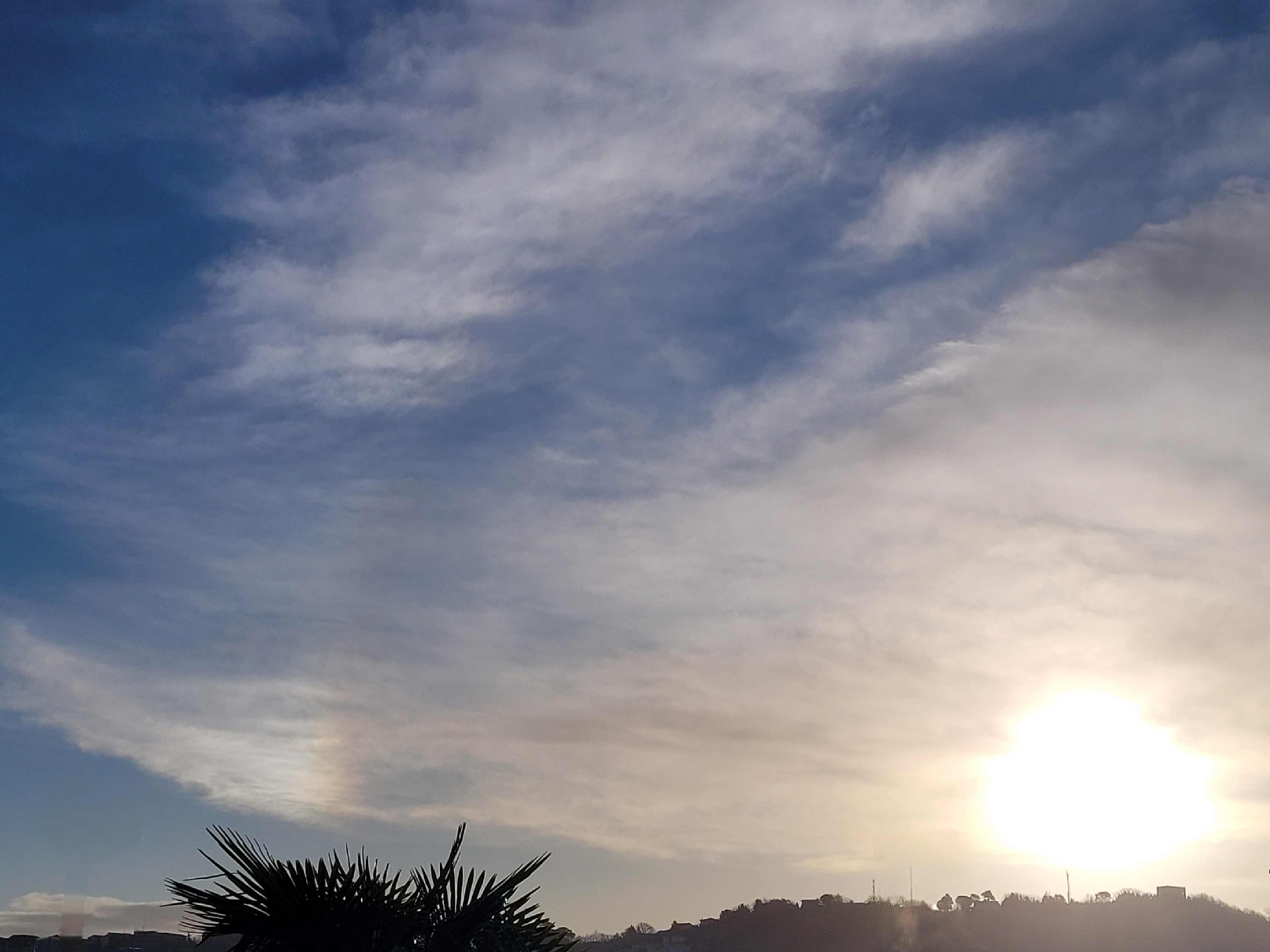 heute am 26.02.26 zeigten sich gegen 15h nachmittags eine linke Nebensonne und ein OBB. Insgesamt war der Himmel etwas getrübt, Saharastaub macht sich schon bemerkbar.