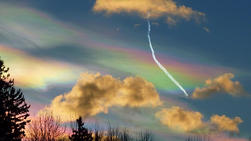 Interessant finde ich es nur dann, wenn die irisierenden Wolken einen weiten Abstand zur Lichtquelle (>25°) haben, da stellt sich mir dann tatsächlich die Frage, ob das ein Irisieren an Tröpfchen sein kann, oder eben doch an Eiskristallen. Evtl. sogar eine Mischung aus Brechung und Interferenz.