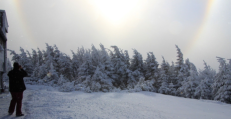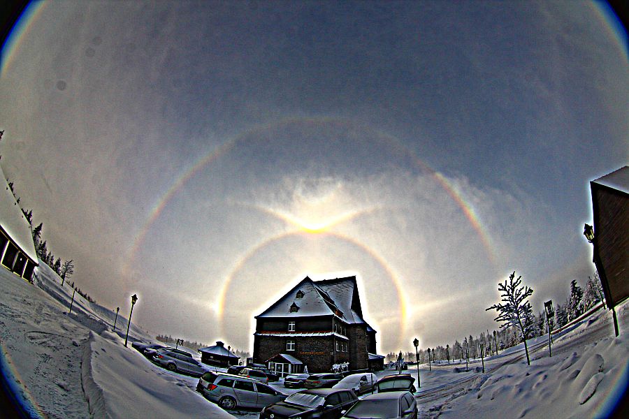 Nachdem die Webcams am Morgen den Böhmischen Nebel und etwas Sonne zeigten, gingen wir sofort auf die Halopirsch. und wieder hatten wir Glück.