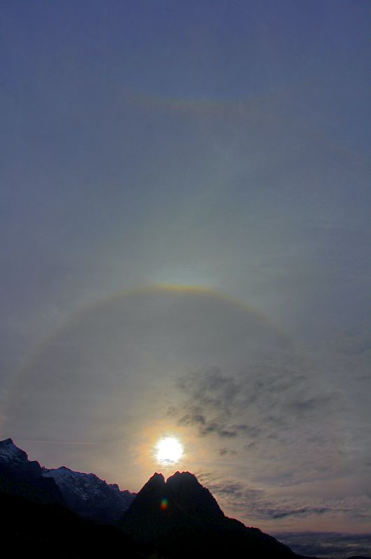 nachdem ich schon fast vergessen hatte, wie Halos aussehen, meldeten sie sich gestern auf der Zugspitze und später in Garmsich unverhofft zurück.