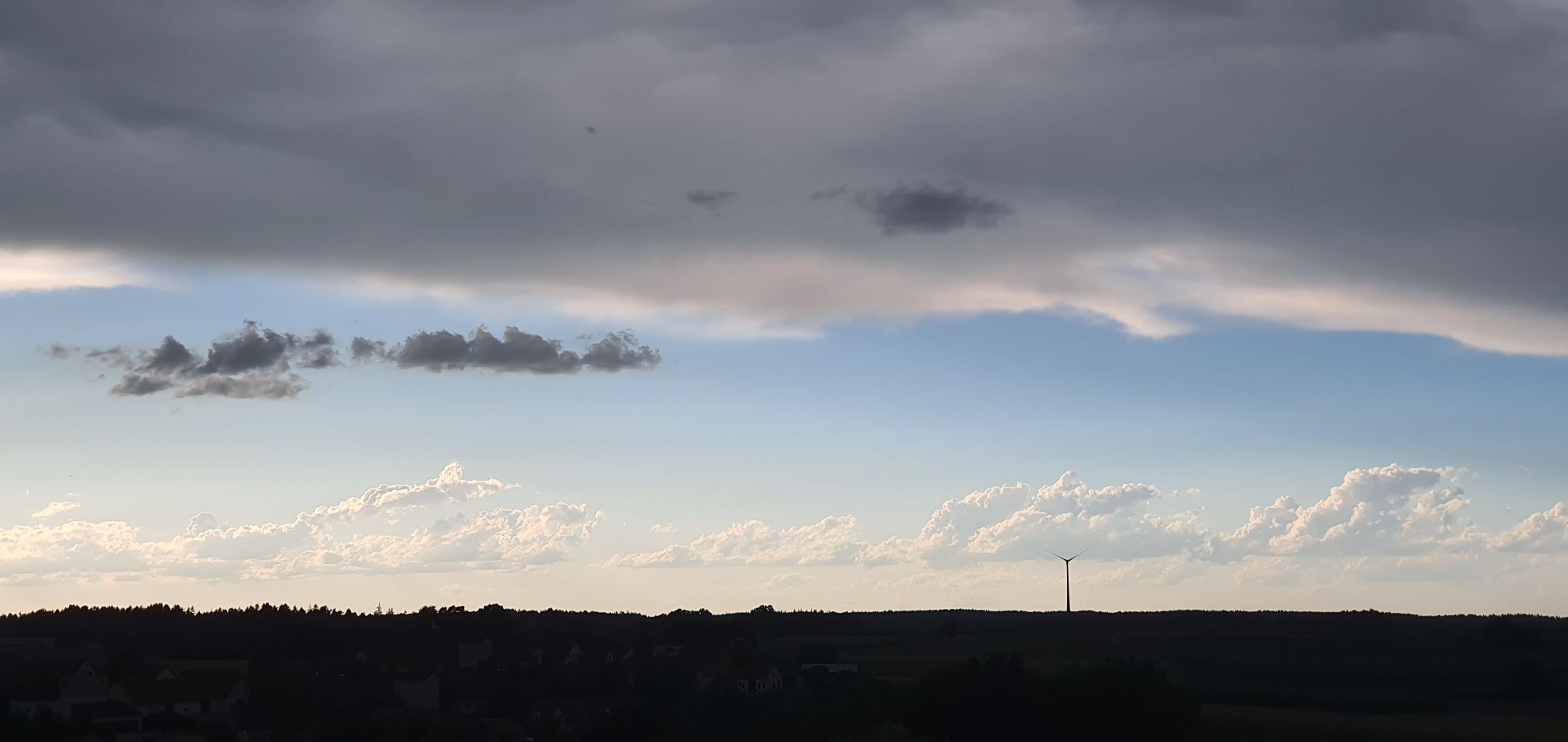 1. Juli, 19:26 auf der A9 vor Neufahrn: 15 min später auf der Rückseite des Gewitters, nachdem ich den Wolkenbruch durchfahren hatte. Und schließlich am Abend bei mir zu Hause