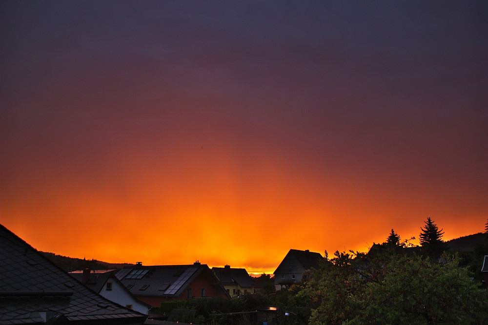 Hier in Schwarzenberg gab es gerade herrliches Zero Order Glow Richtung Regenende. Die "Strahlen" sollten die Niederschlagsstreifen sein, die von der im Vogtland herauskommenden Sonne angeleuchtet werden.