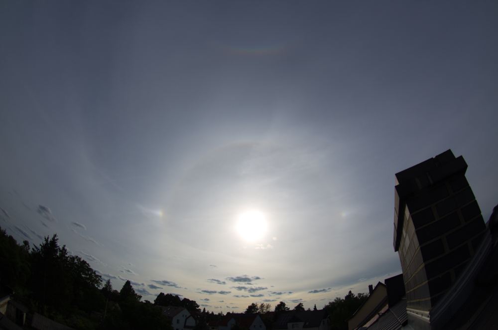 Einige Minuten später verschwanden Horizontalkreis und 120°-Nebensonnen, dann kam aber noch der Circumzenitalbogen dazu (Supralateralbogen bzw. 46°-Ring war visuell nicht beobachtbar):