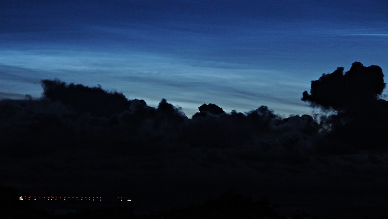 Heute morgen um 2.25 Uhr ein breites Band NLC über den Wolken.