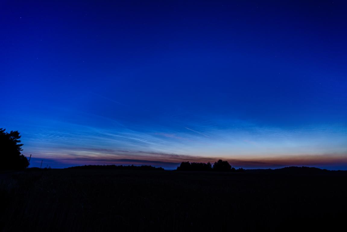 Interessanterweise erstreckten sich die NLC mehr von N nach NE statt nach NW. Die Helligkeit war nicht groß, die Strukturen waren aber klar erkennbar und sicher zu identifizieren.