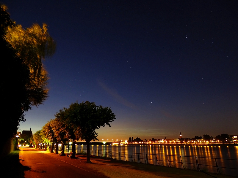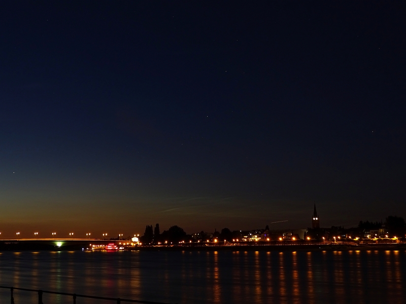 wie bei in Simmerath waren die NLCs auch in Bonn eine unauffällige Angelegenheit (Helligkeit 1, nur wenige Minuten gegen 23:30 MESZ mit Ach und Krach 2). Immerhin konnte man erkennen, wie sie etwas nach Westen ziehen. Trotz der unterschiedlichen Motive wird dies auch auf nachstehenden 3 Fotos deutlich. Die gesamte Ausdehnung über den Beobachtungszeitraum (23:18 - 23:54 MESZ) betrug 0 - 30° in Azimuth bei 5° Höhe.