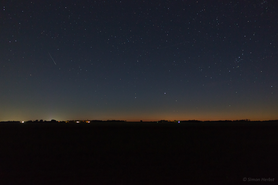 Pönitz (Taucha) b. Leipzig, 23:43 MESZ, Helligkeit: 3, Höhe: 6°, Azimut: 317°-11°