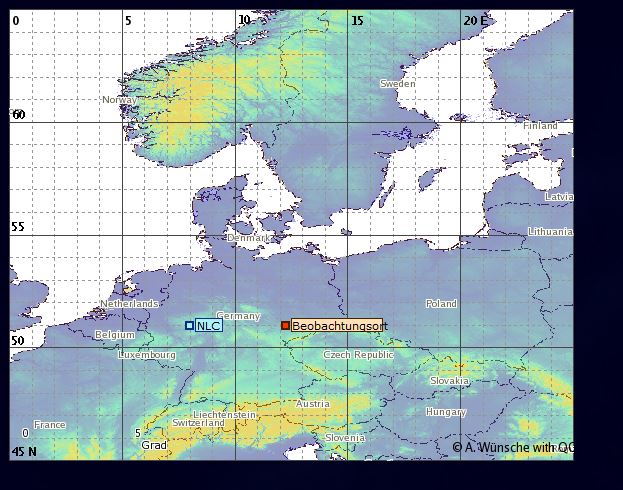 Die Positionsberechnung ergab, dass die NLCs über Westdeutschland standen die ich gesehen habe.