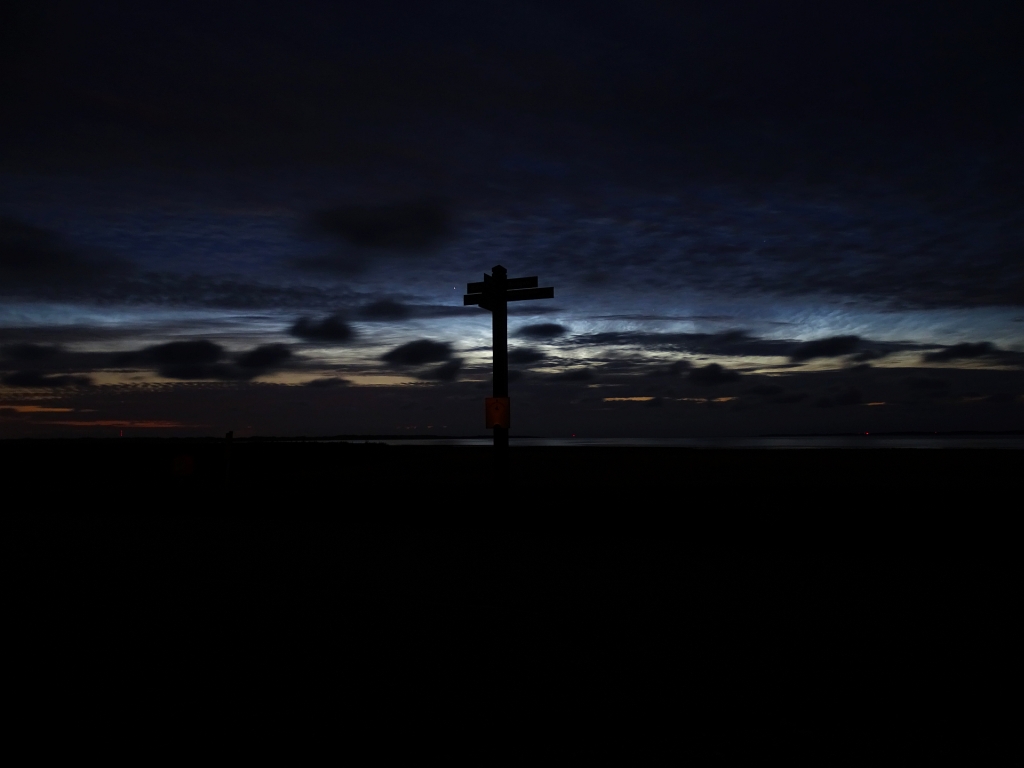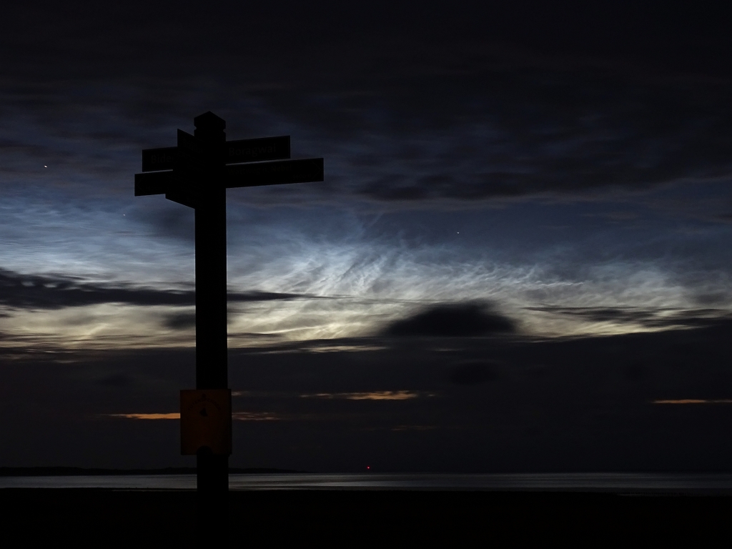 Abb. 1: NLC-Display über Amrum. Aufgenommen in der Norddorfer Marsch am 15.06.2022 um 02:02 MESZ. Sonne 11.7° unter dem Horizont.
