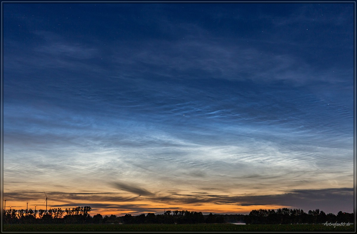 Die NLCs wurden derweil und im Verlauf immer heller, gegen 23:40 MESZ konnte ich eine überzeugende "2" bei der Helligkeitseinordnung vergeben: