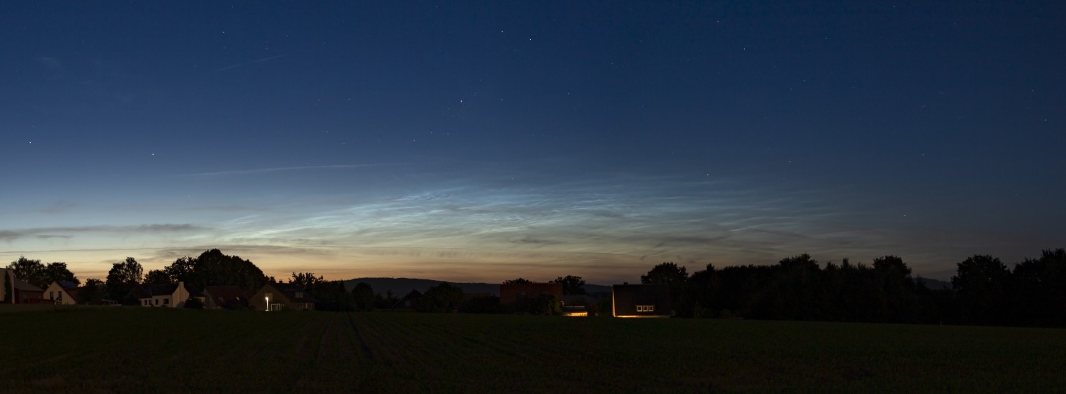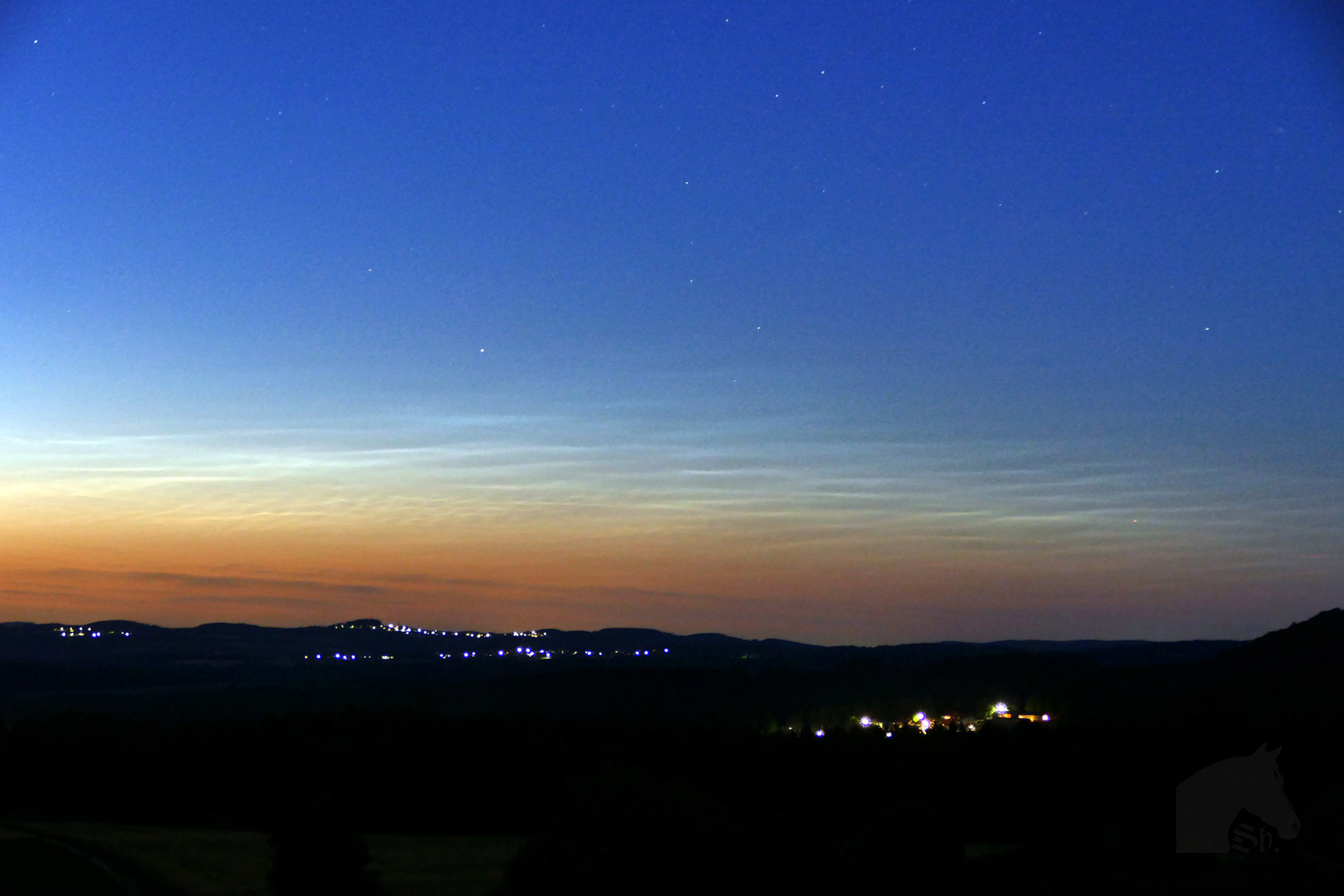 Im Anschluss ging es dann aber ins Bett. Eigentlich mit dem Vorhaben, den Morgensektor ebenfalls zu beobachten, allerdings sollte es anders kommen. Die hiesigen NLCs der Helligkeit 4-5 (?) habe ich gezielt verschlafen, meine Dachkamera (in 9km Entfernung) lieferte am Morgen danach eindrucksvolle Bilder: