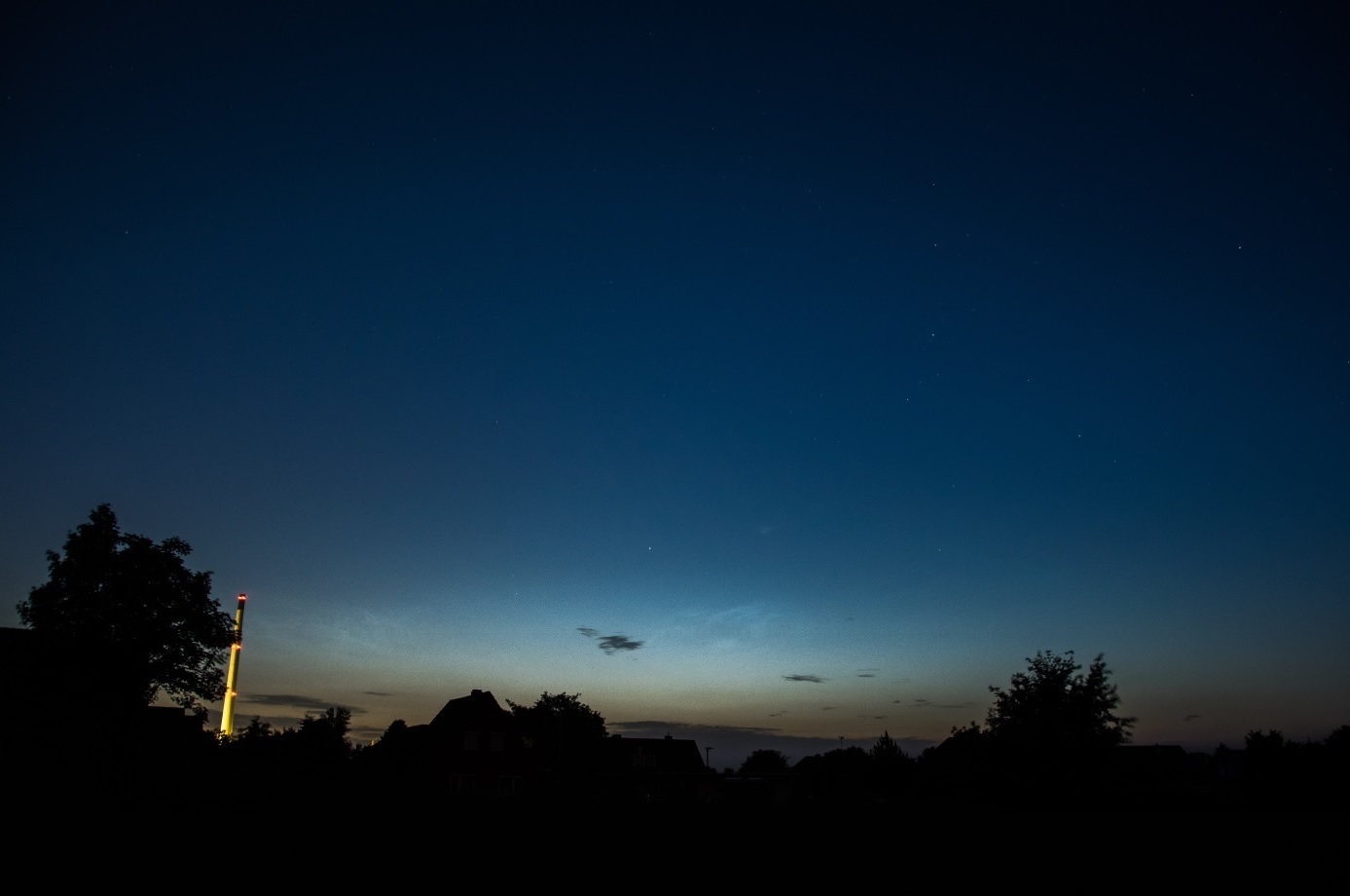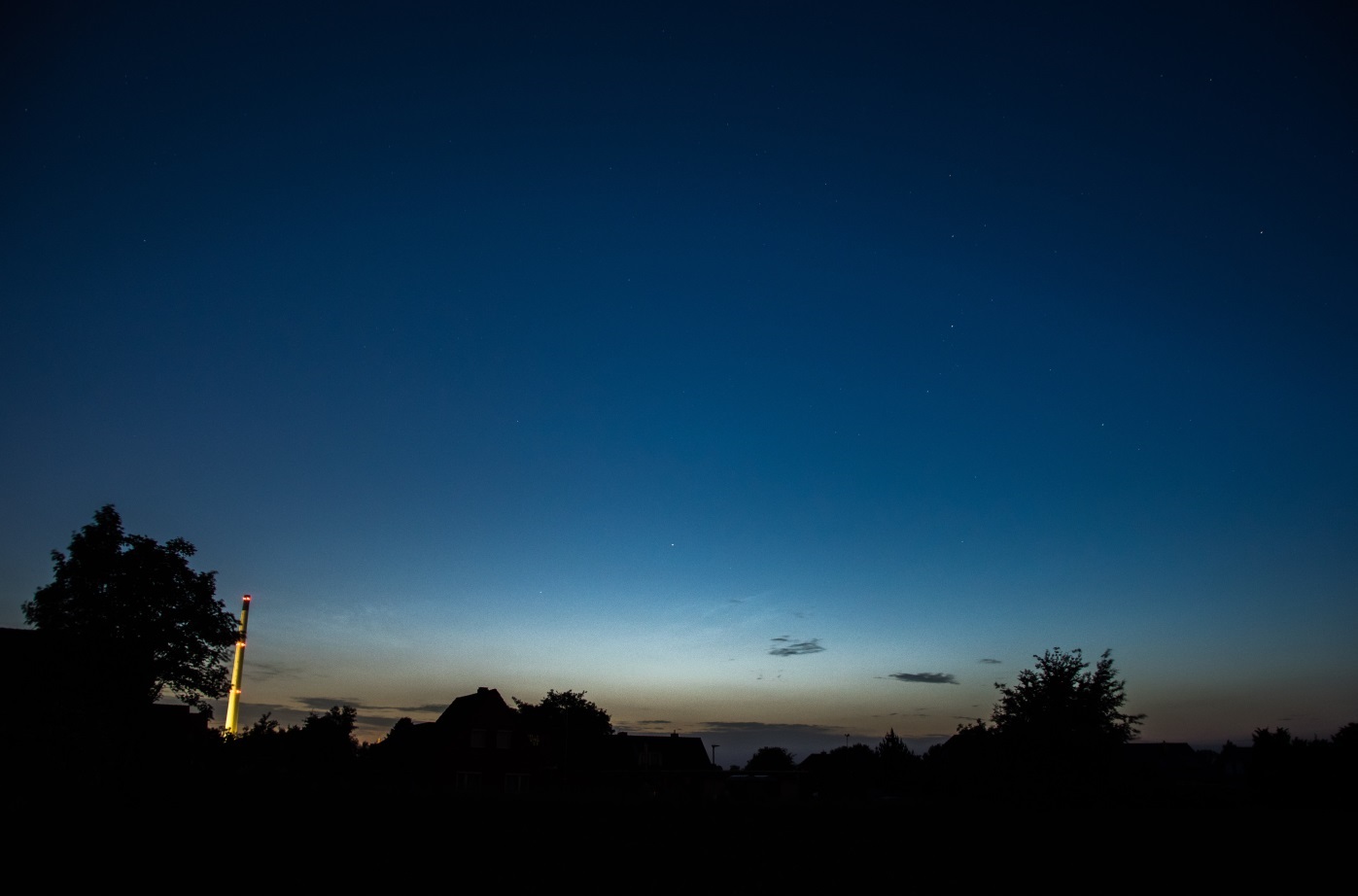 Rund um 3 Uhr (MESZ) erreichten die NLCs mit 7° Höhe ihren "Höchststand". Kurz danach war kein fotografischer Nachweis mehr möglich.