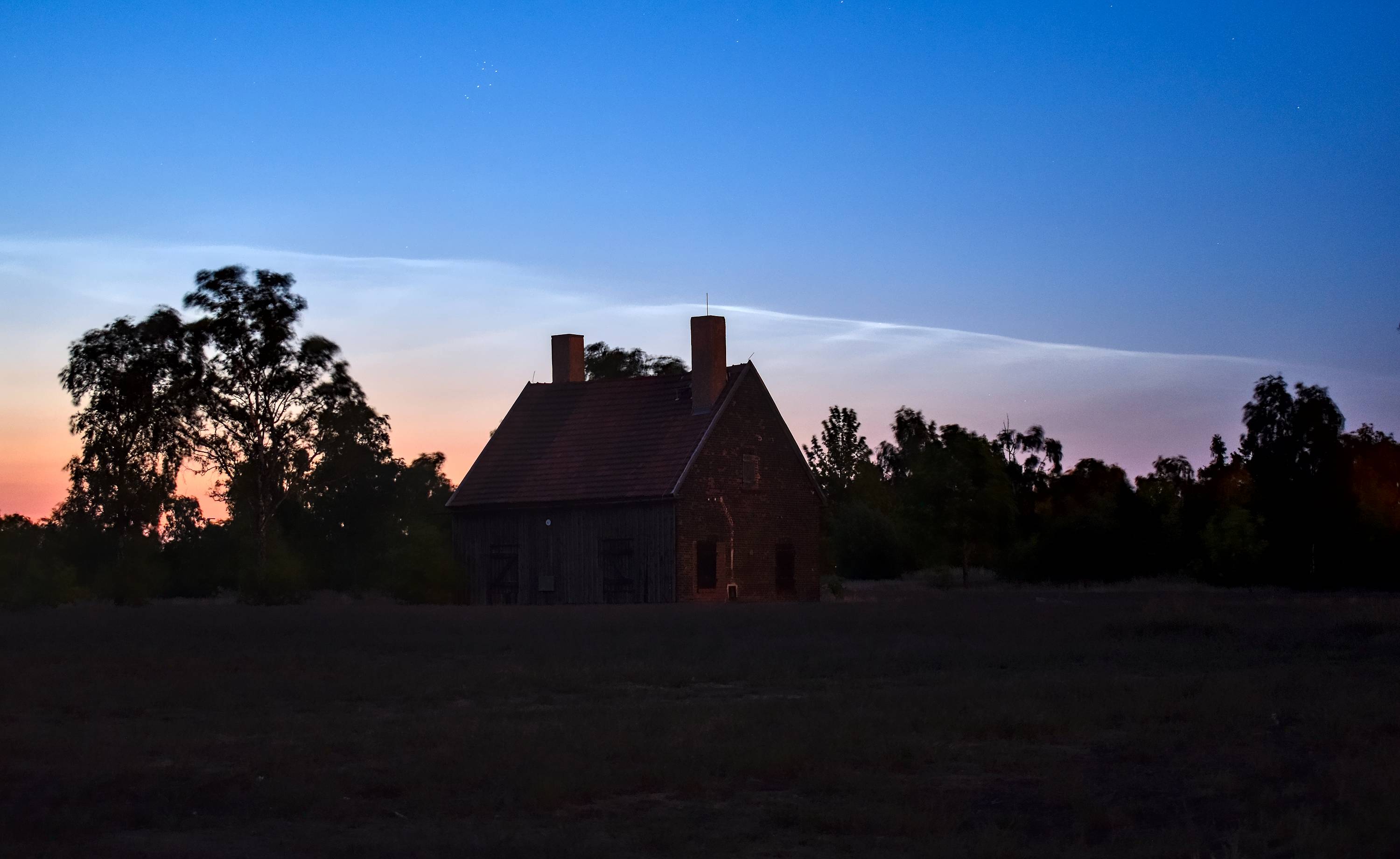 Quernheim (Kirchlengern) in NNO-NO fotografische, zarte NLC-Strukturen. Ca. 10 Grad Höhe in Wolkenlücken. (Stand jetzt.)