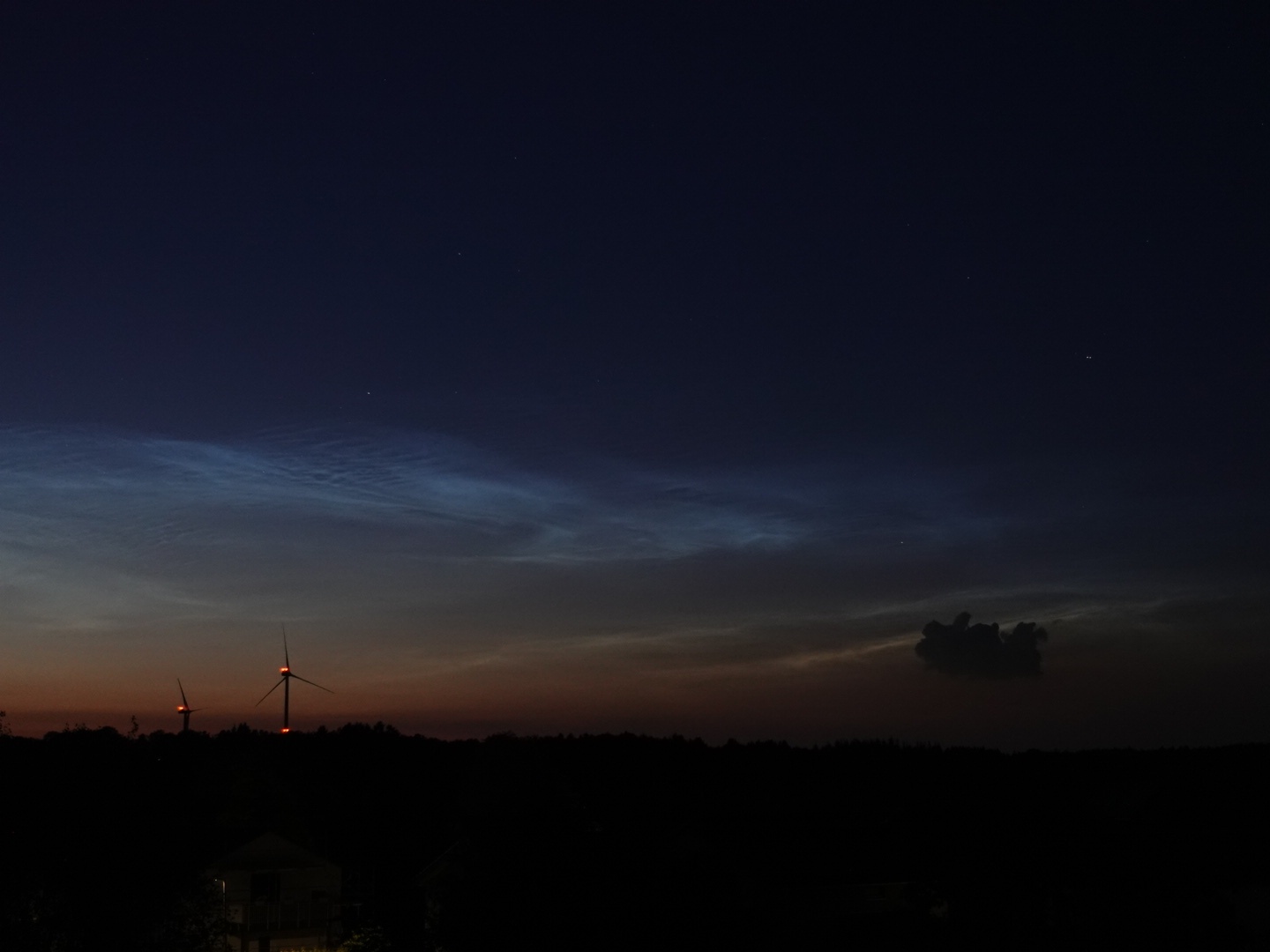 Gestern über der Nordeifel (50°39'N) schöne NLCs inkl. einiger Wellen, bis kurz nach Mitternacht zu verfolgen.