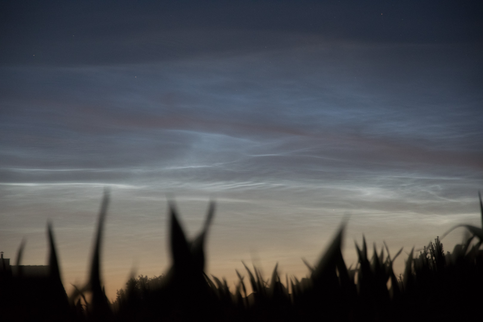 Die leuchtende Nachtwolke setzte sich nach Westen weiter fort und konnte wegen Gebäudebegrenzung nicht abgelichtet werden (Bildrand links ist Norden).